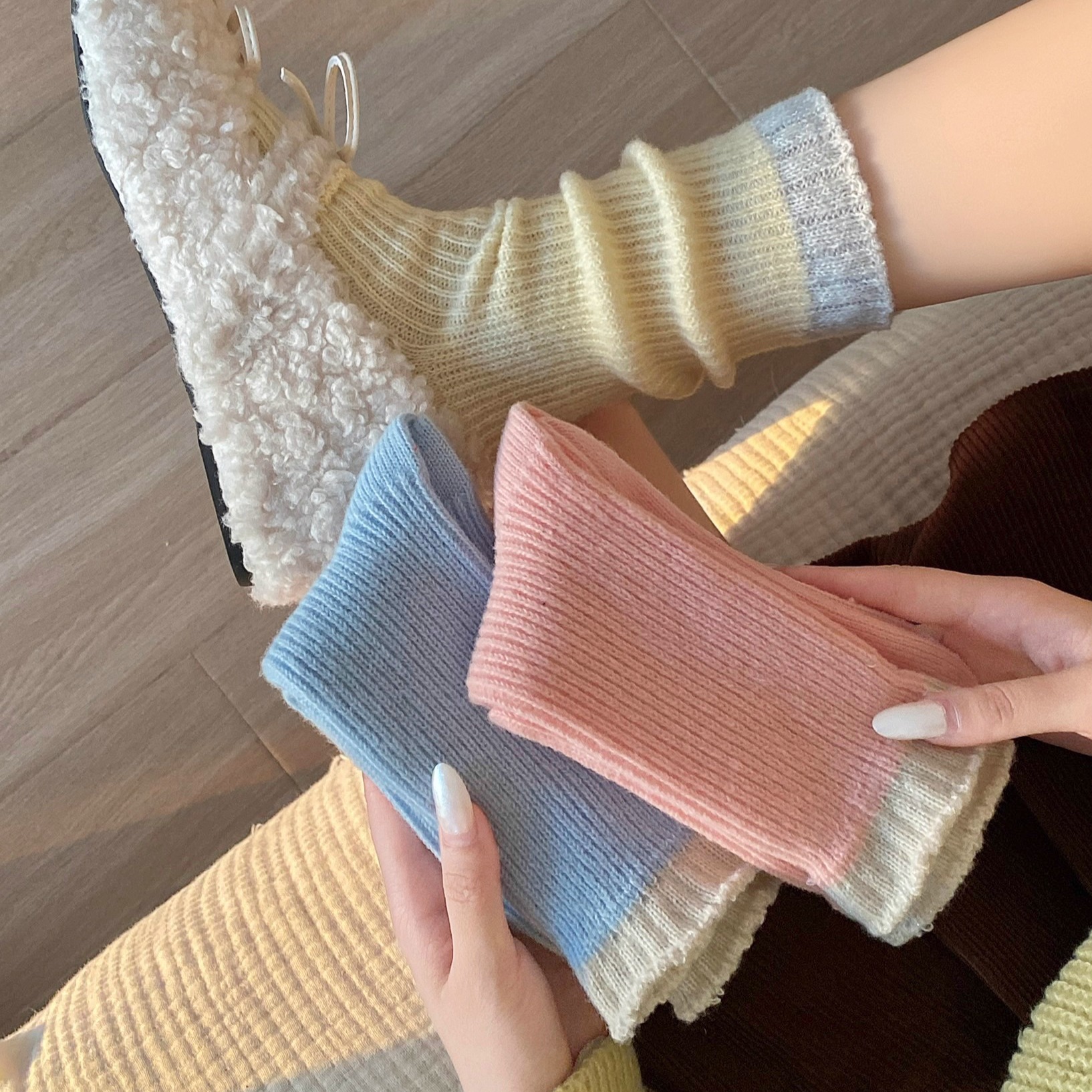 秋冬双针金银丝撞色袜子袜秋季 美拉德色系中筒袜甜美少女风花边袜