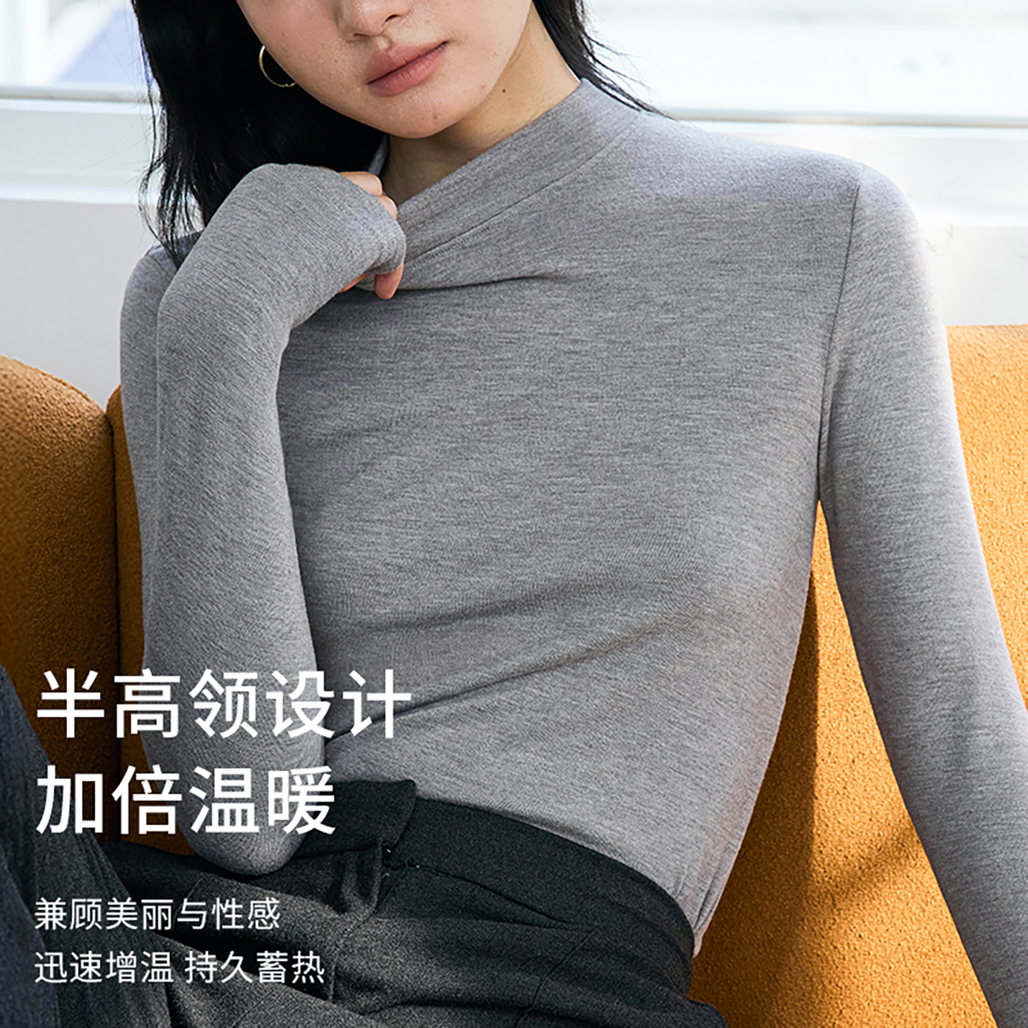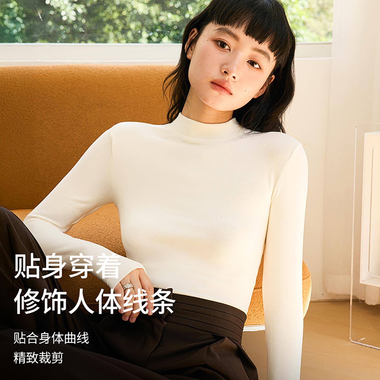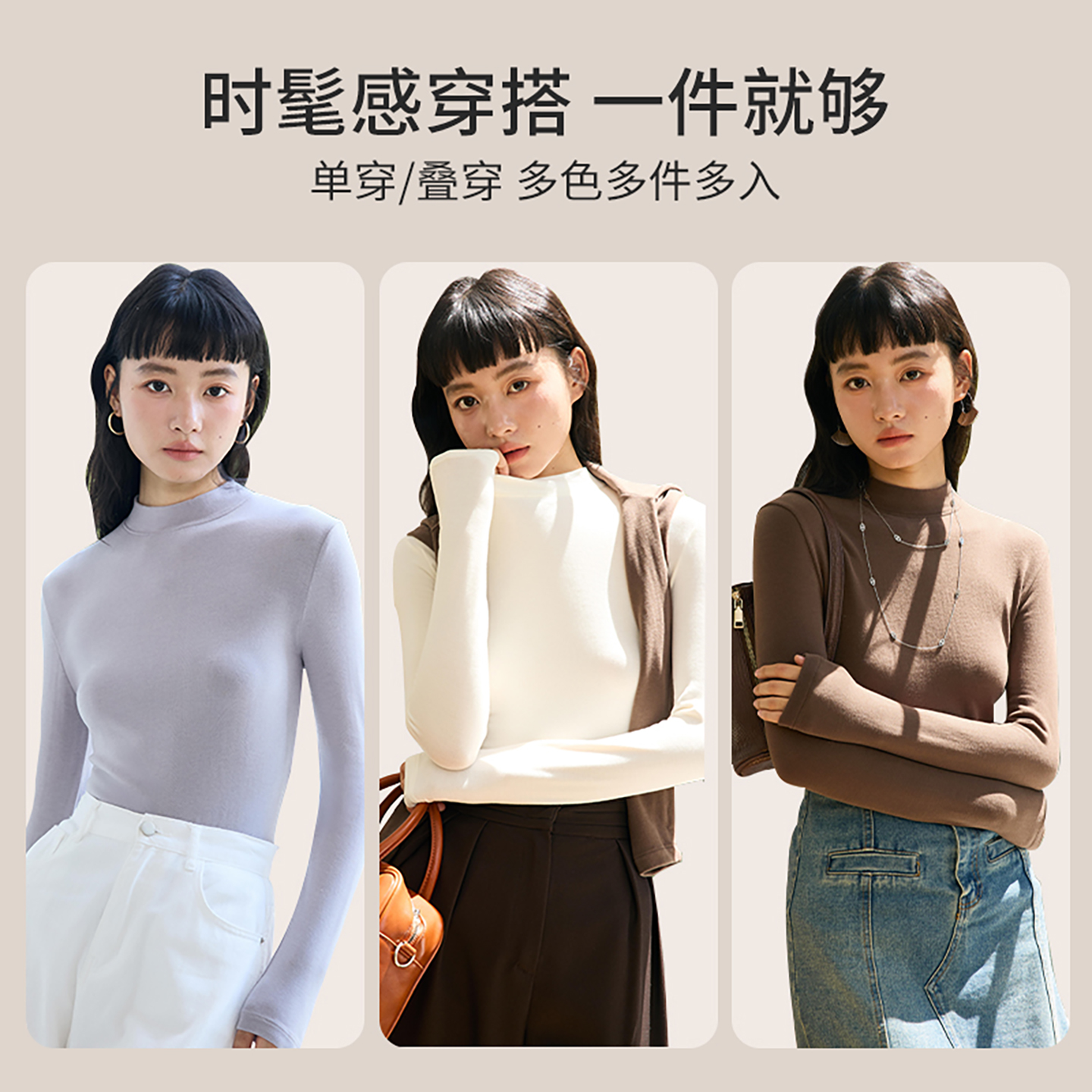 长袖 外穿羊毛德绒修身 上衣 女秋冬内搭2025新款 桃奈斯半高领打底衫