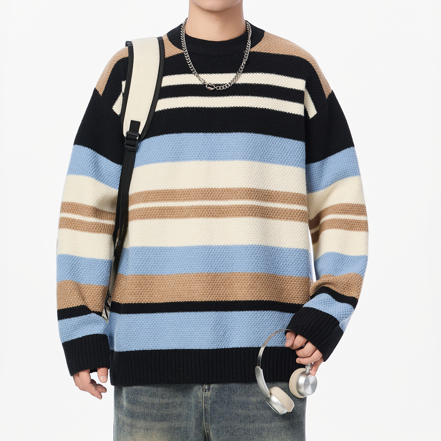 遮屁股针织衫 KEIKO 松弛感粗针条纹毛衣女25秋冬慵懒撞色中长款