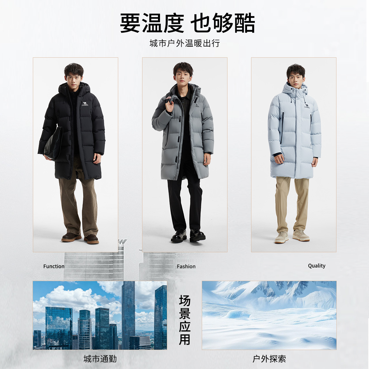 户外冬季 新款 加厚黑色面包服宽松保暖连帽 羽绒服男中长款 骆驼男装