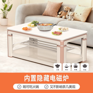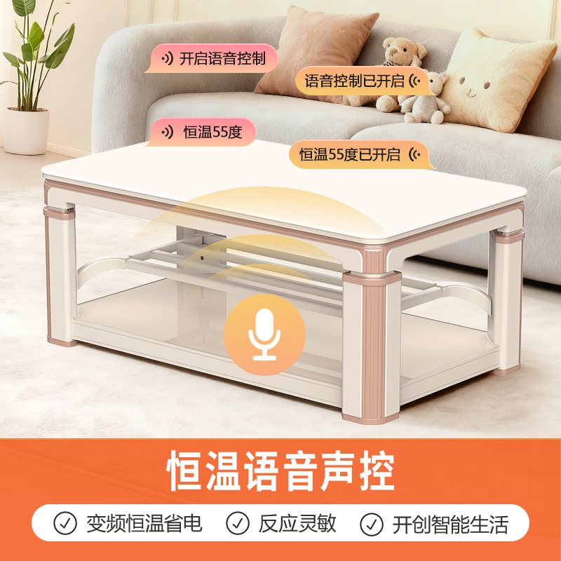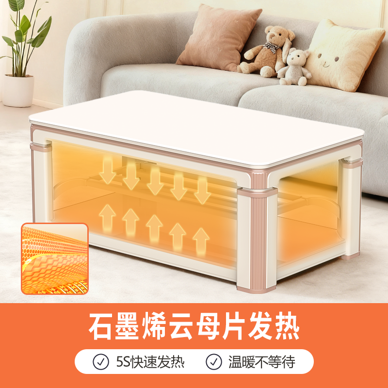 富炬2025新款 电暖茶几奶油风被炉桌烤火茶几一体客厅长方形取暖桌
