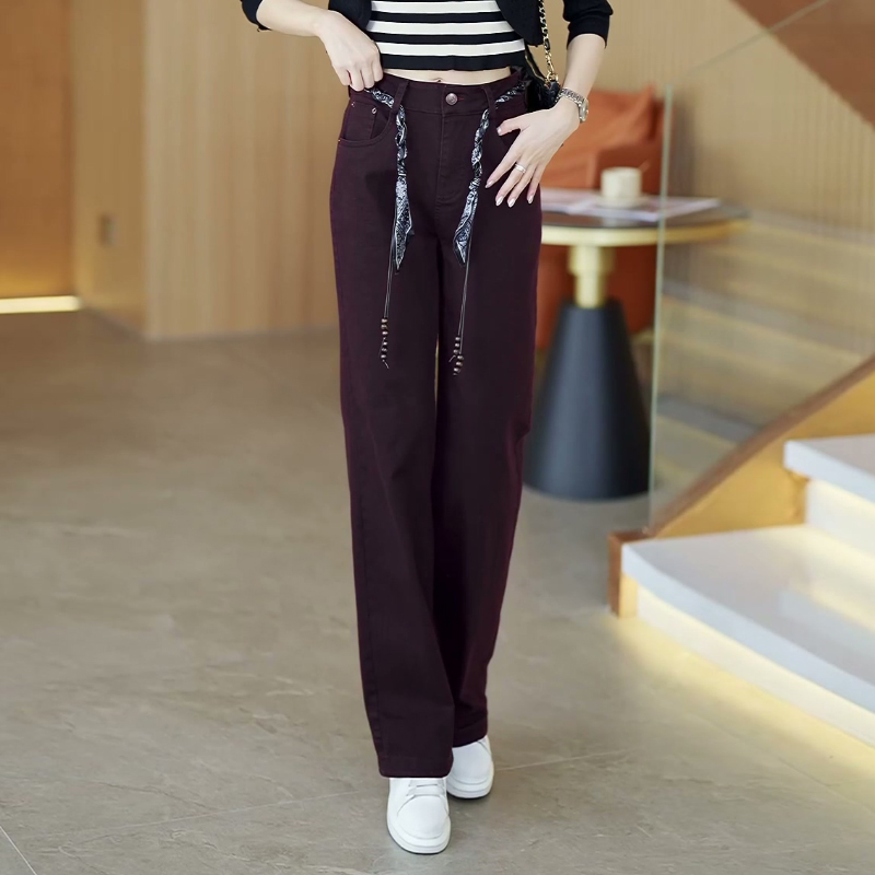 女春秋新款 休闲直筒慵懒松弛感裤 高腰垂感窄版 裤 子 西装 黑色阔腿裤