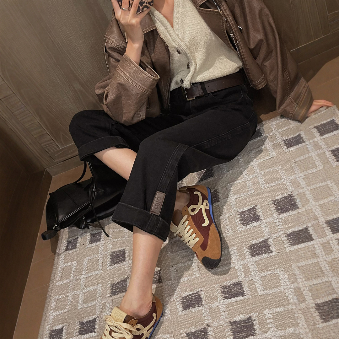 直筒阔腿裤 五只白鹅宽松牛仔裤 丹宁蓝高腰黑色窄版 新款 女2025秋季