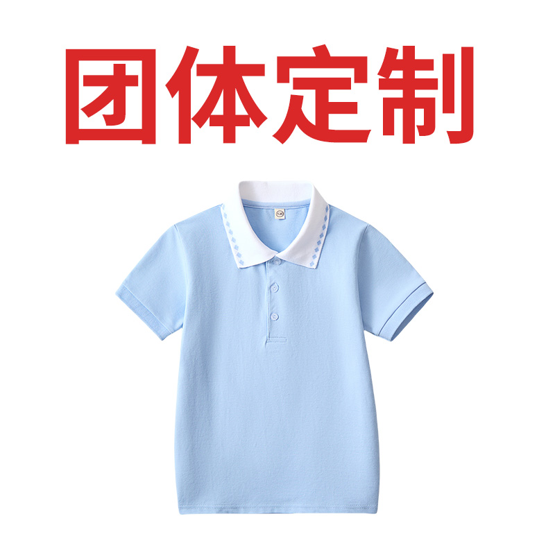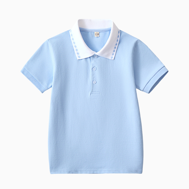 小学生浅蓝色校服园服班服 T恤POLO衫 儿童装 小菱形撞色领男童短袖