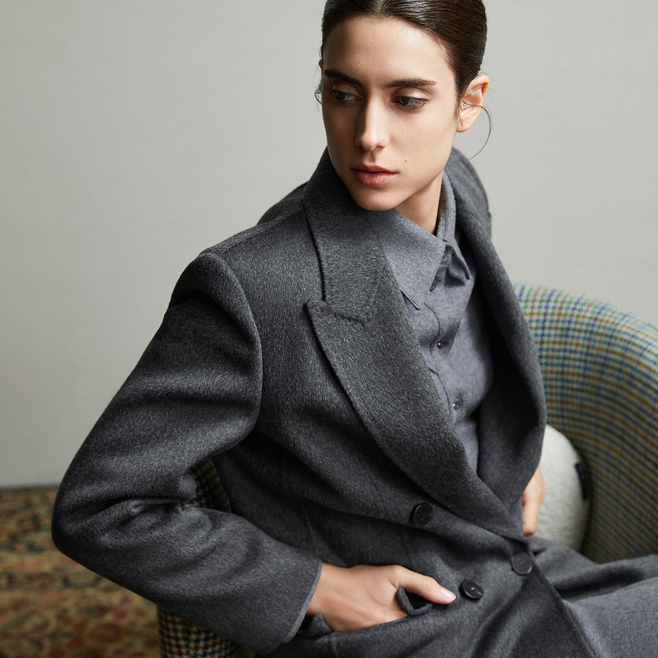 801西服领羊绒大衣女毛呢外套4785 经典 东黎山羊绒 女士秋冬中长款