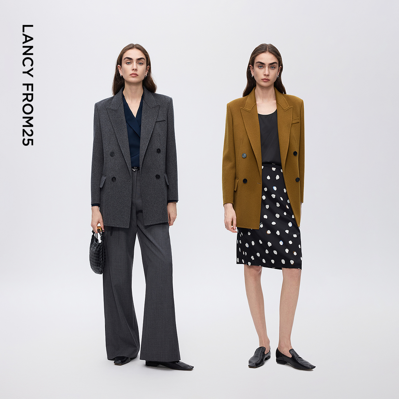 新款 2025冬季 秋水伊人优雅翻领毛呢外套 通勤大衣 100%绵羊毛