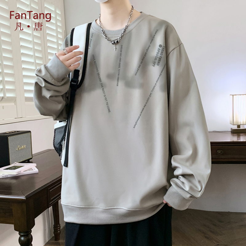 打底衫 港风宽松字母印花青少年潮流长袖 圆领卫衣男春秋季 凡唐大码