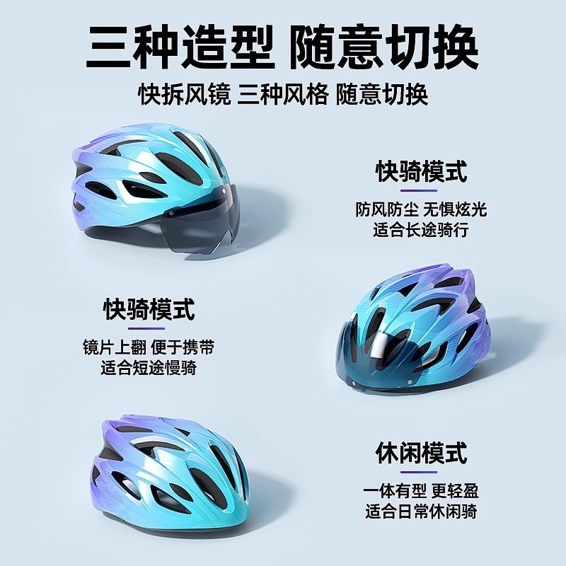 儿童宝宝骑行头盔带风镜自行车骑行装 备公路车山地车青少年单车