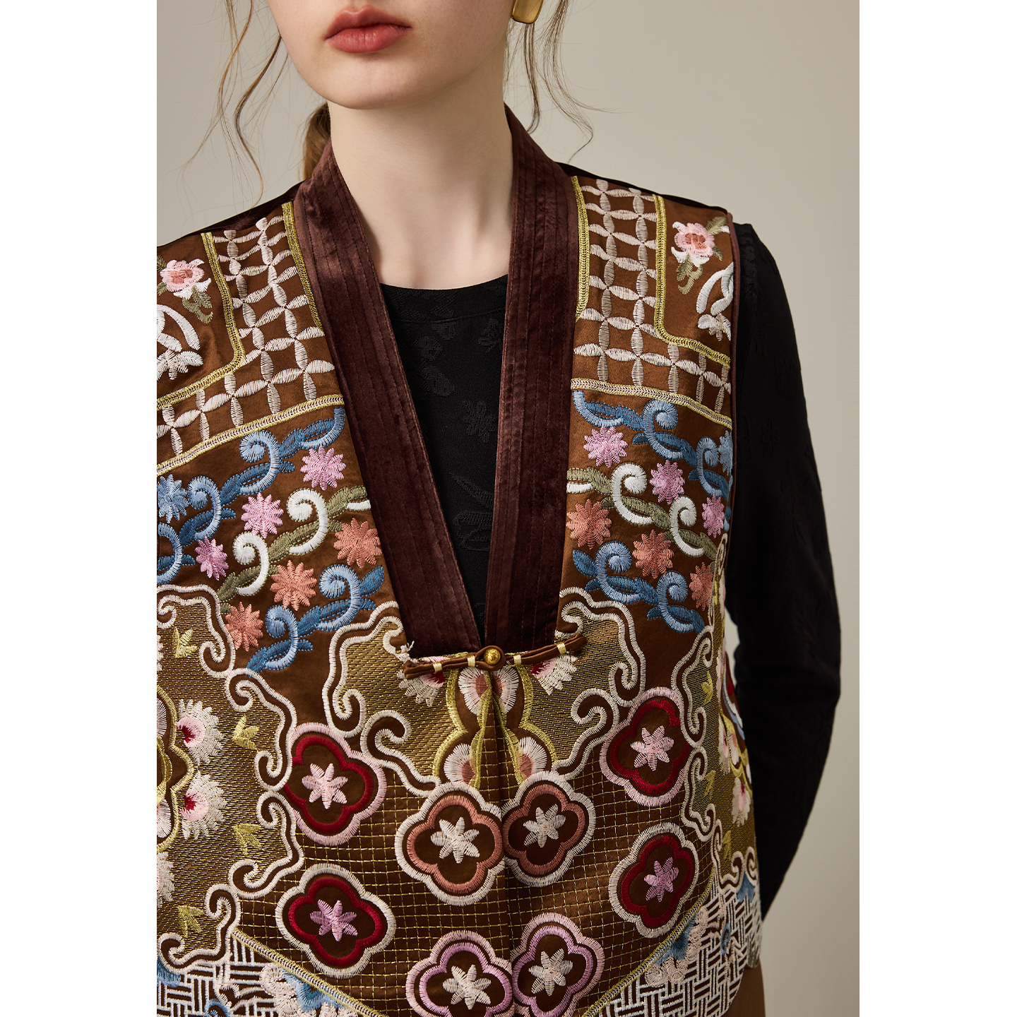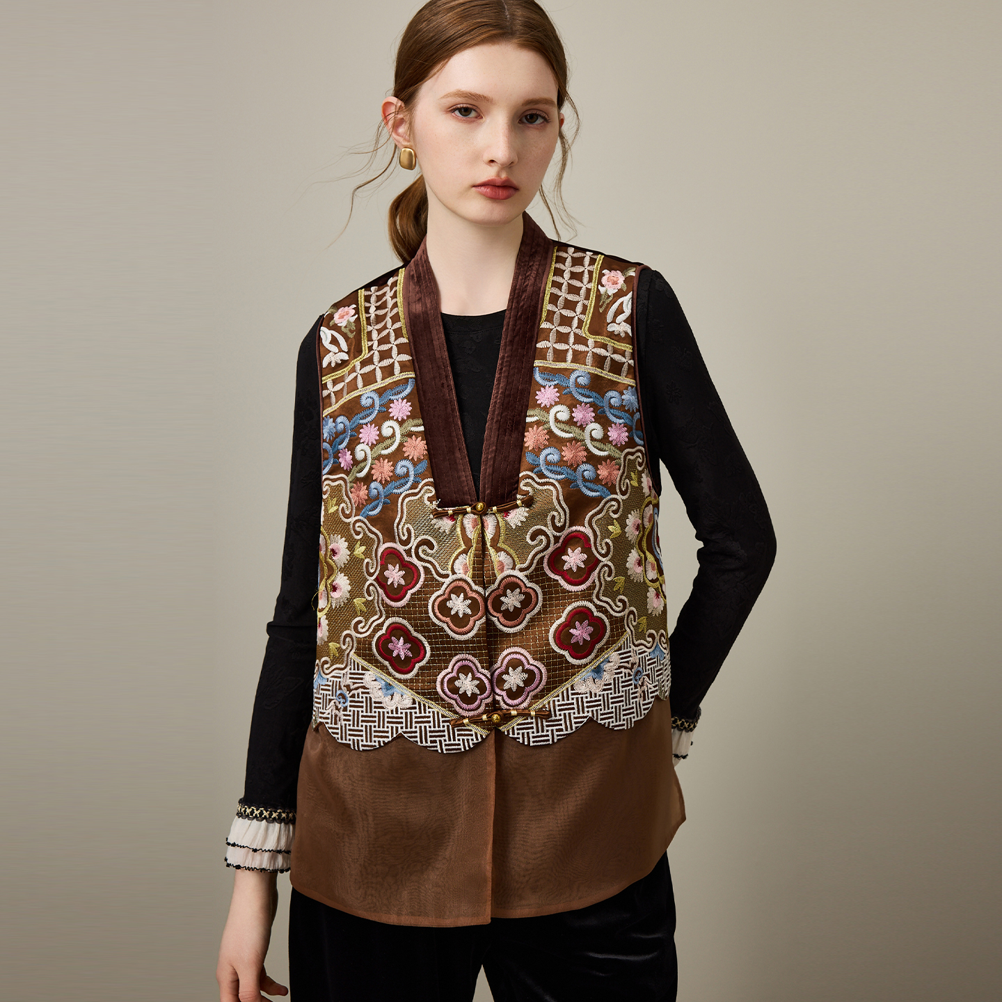 绿色立体花朵温柔风针织马甲女秋季 不规则宽松设计感毛衣背心 新款