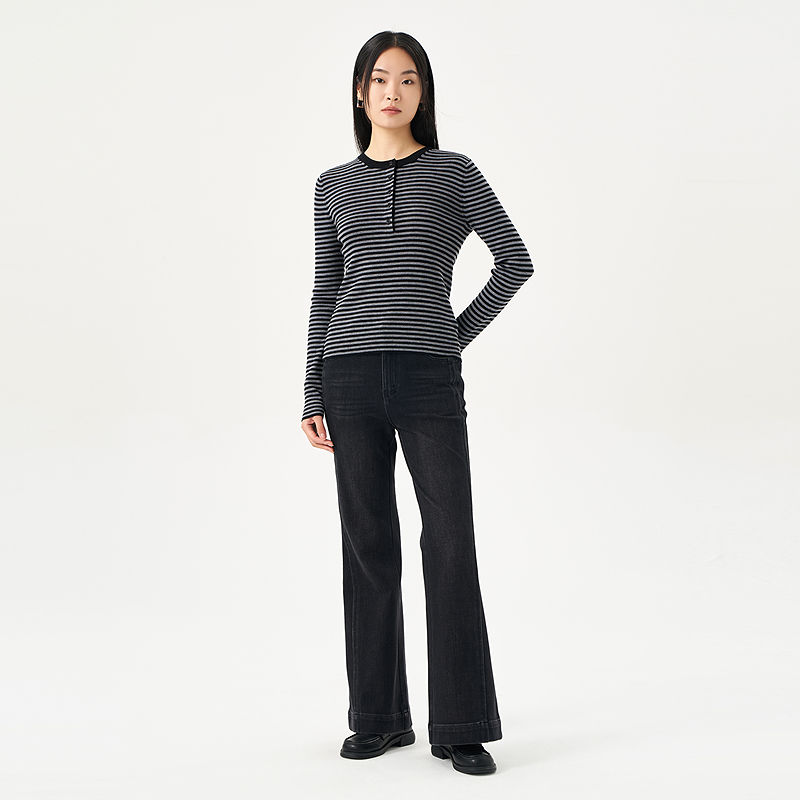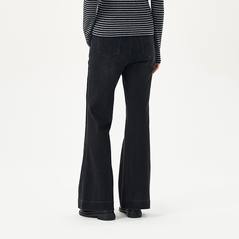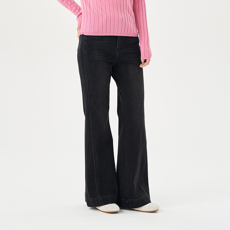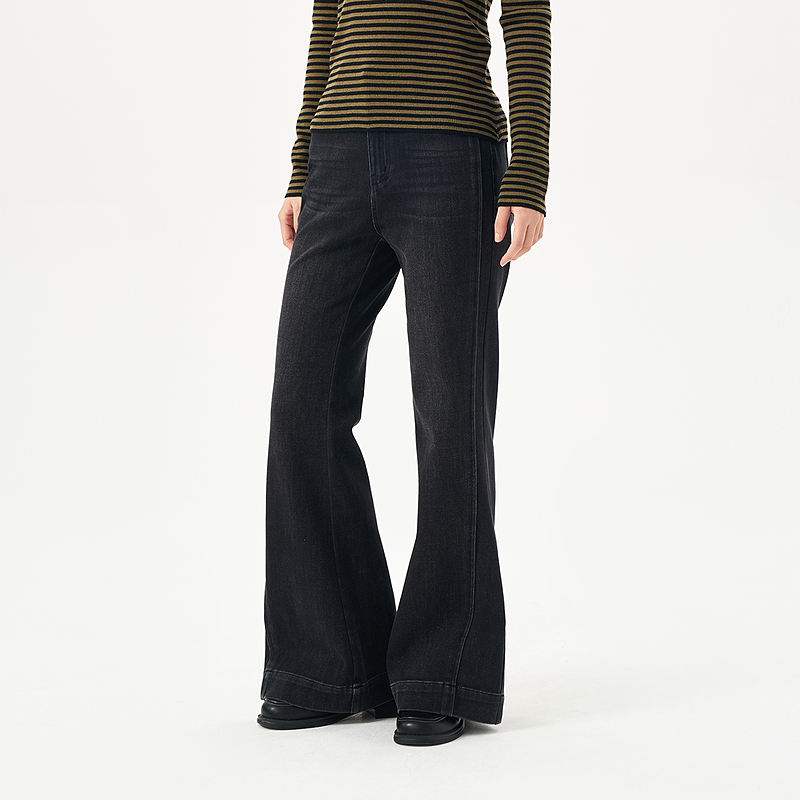 显瘦黑色百搭微喇裤 OTT2025秋季 女水洗修身 复古时髦牛仔裤 新品