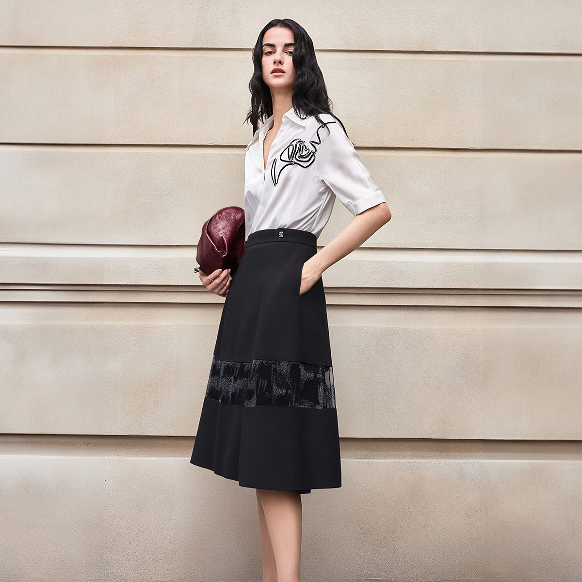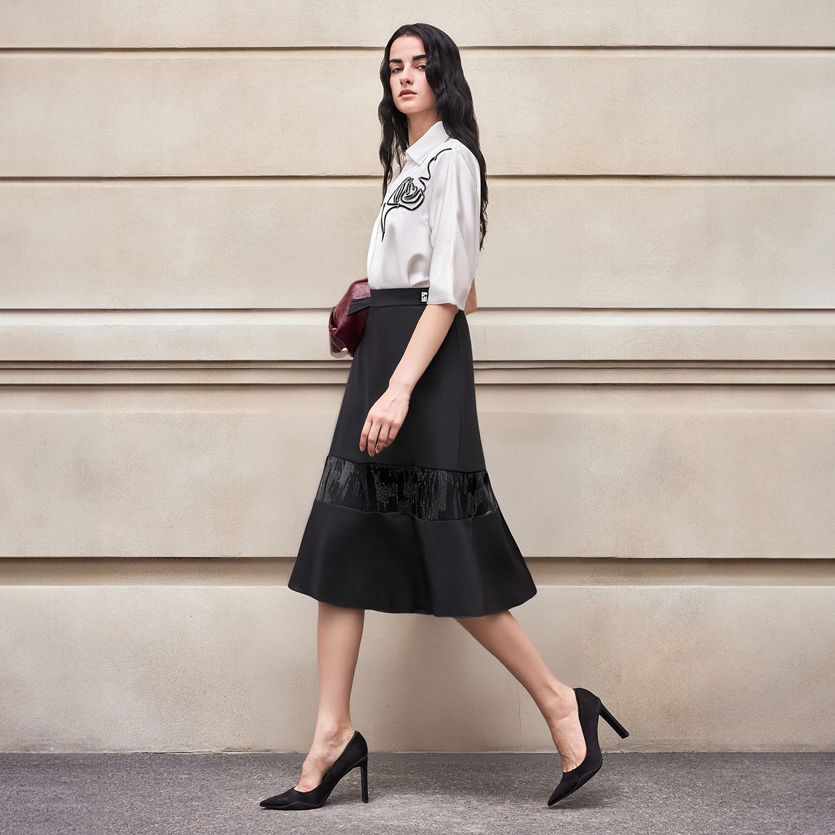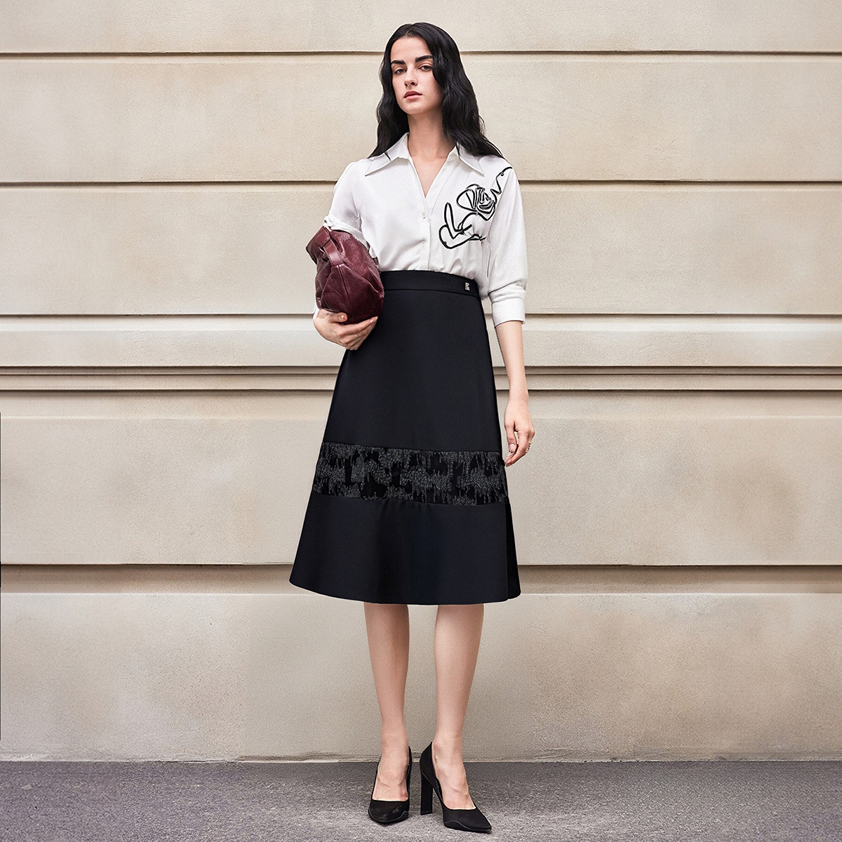 BCBG25早秋新款 简约休闲慵懒风女士半身裙长裙 高级设计感时尚