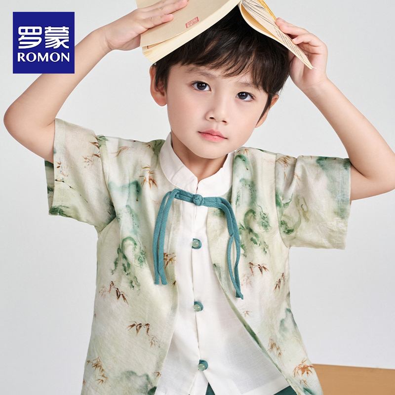 小少爷唐装 儿童新中式 国学演出服 中国风套装 罗蒙男童汉服2025夏款