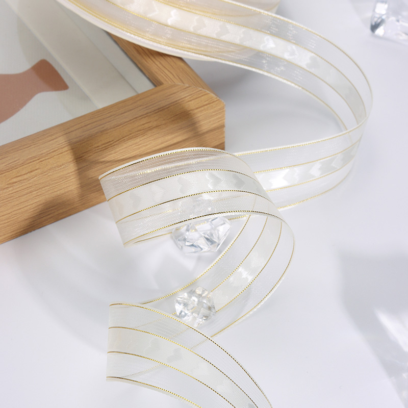 2.2cm鲜花爱心雪纱带丝带蛋糕金丝刺绣礼品包装 缎带DIY蝴蝶结绑带