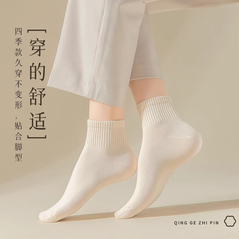 纯棉防臭短袜白色无骨中筒袜女士运动袜 春秋季 袜子女2025新款 爆款