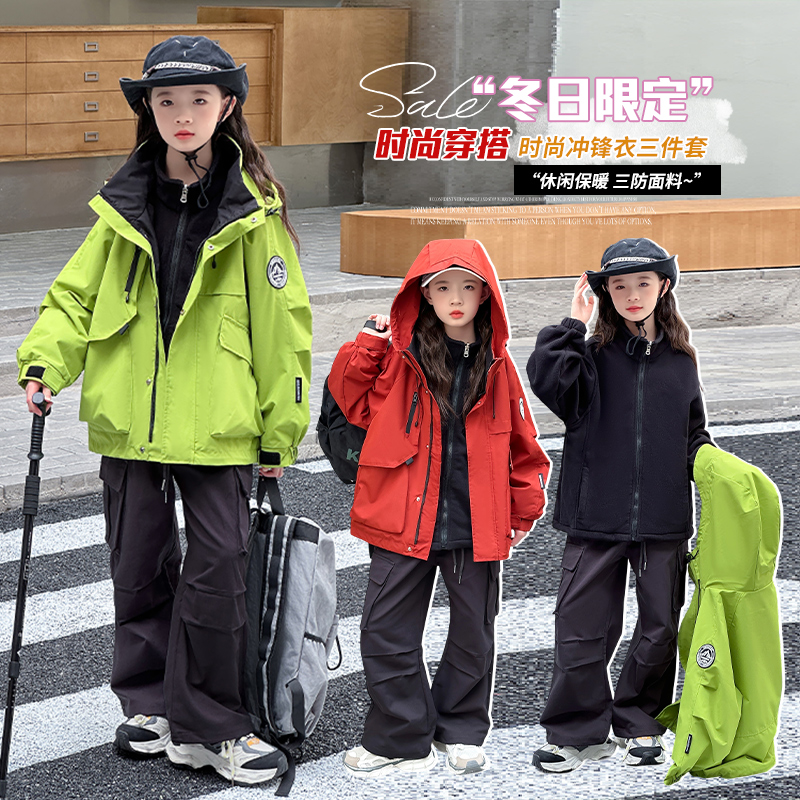 女童外套2025新款 春秋儿童洋气时髦男童防风衣中大童三合一冲锋衣