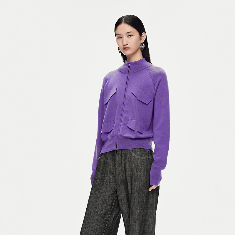 羊毛平纹面料休闲针织开衫 新款 AUM噢姆2025年冬季 女 天猫臻选