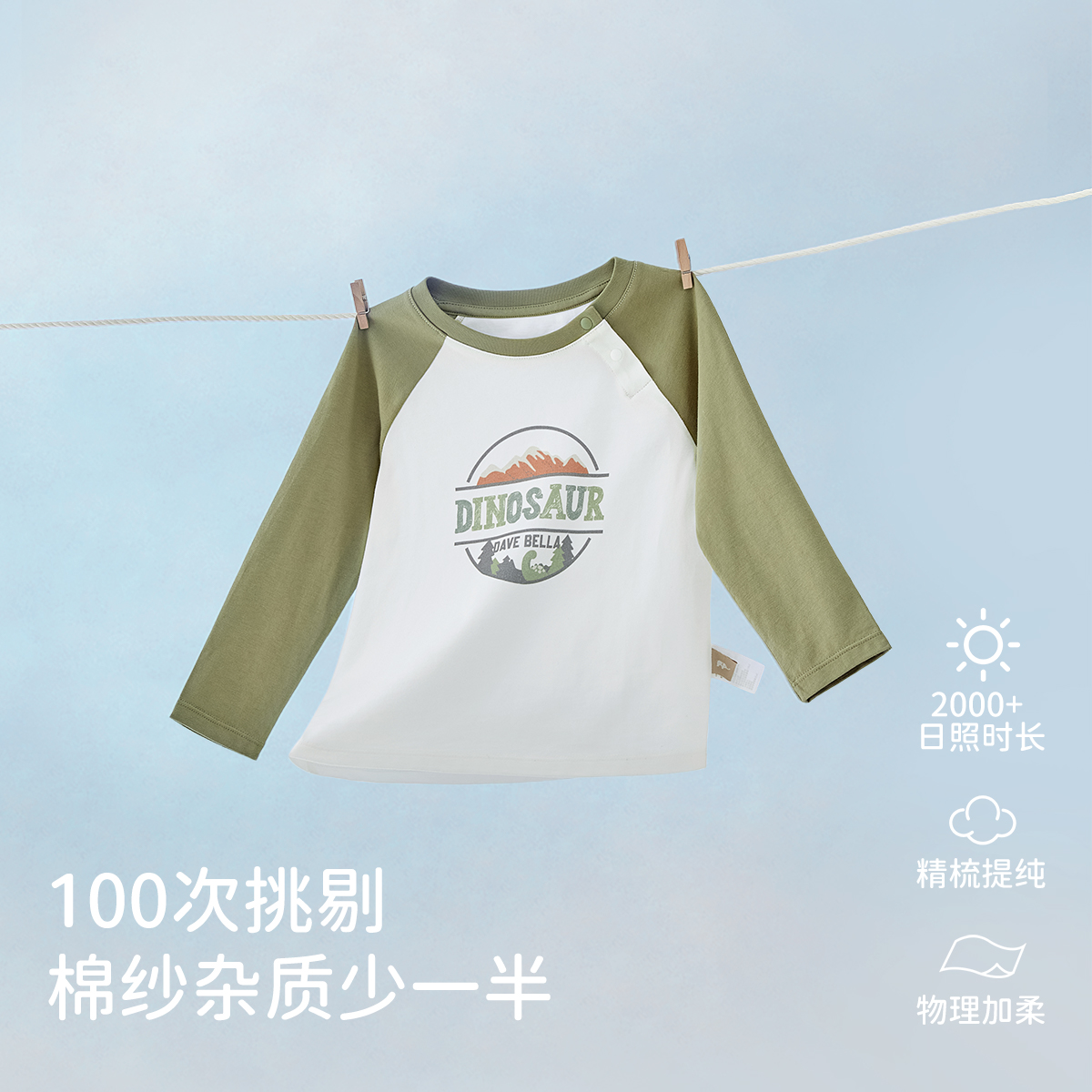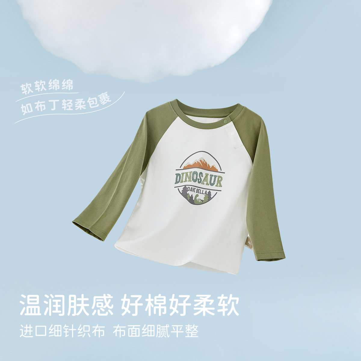 T恤秋装 戴维贝拉男童长袖 儿童透气纯棉上衣男孩男宝宝 100%棉