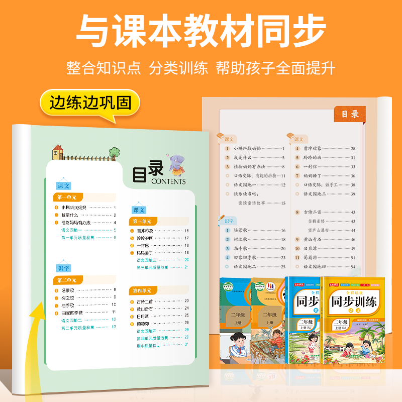 二年级上册语数英同步训练全套练习册 课课练RJ 语文数学教材同步训练练习题小学课堂一课一练作业本2年级部编人教版