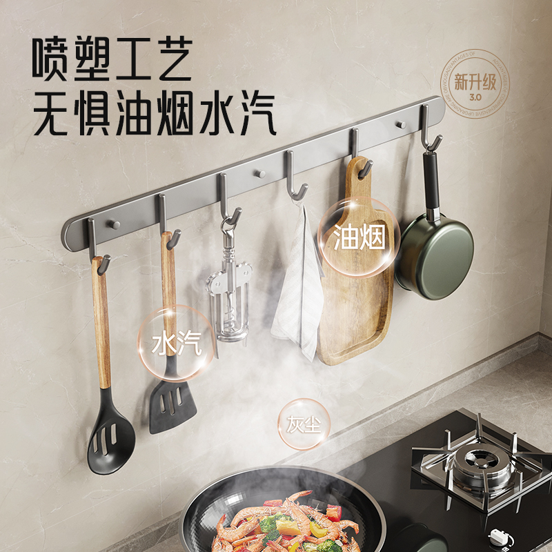 打孔式 不锈钢厨房挂钩壁挂厨房挂杆多功能挂厨具锅铲勺子收纳挂架