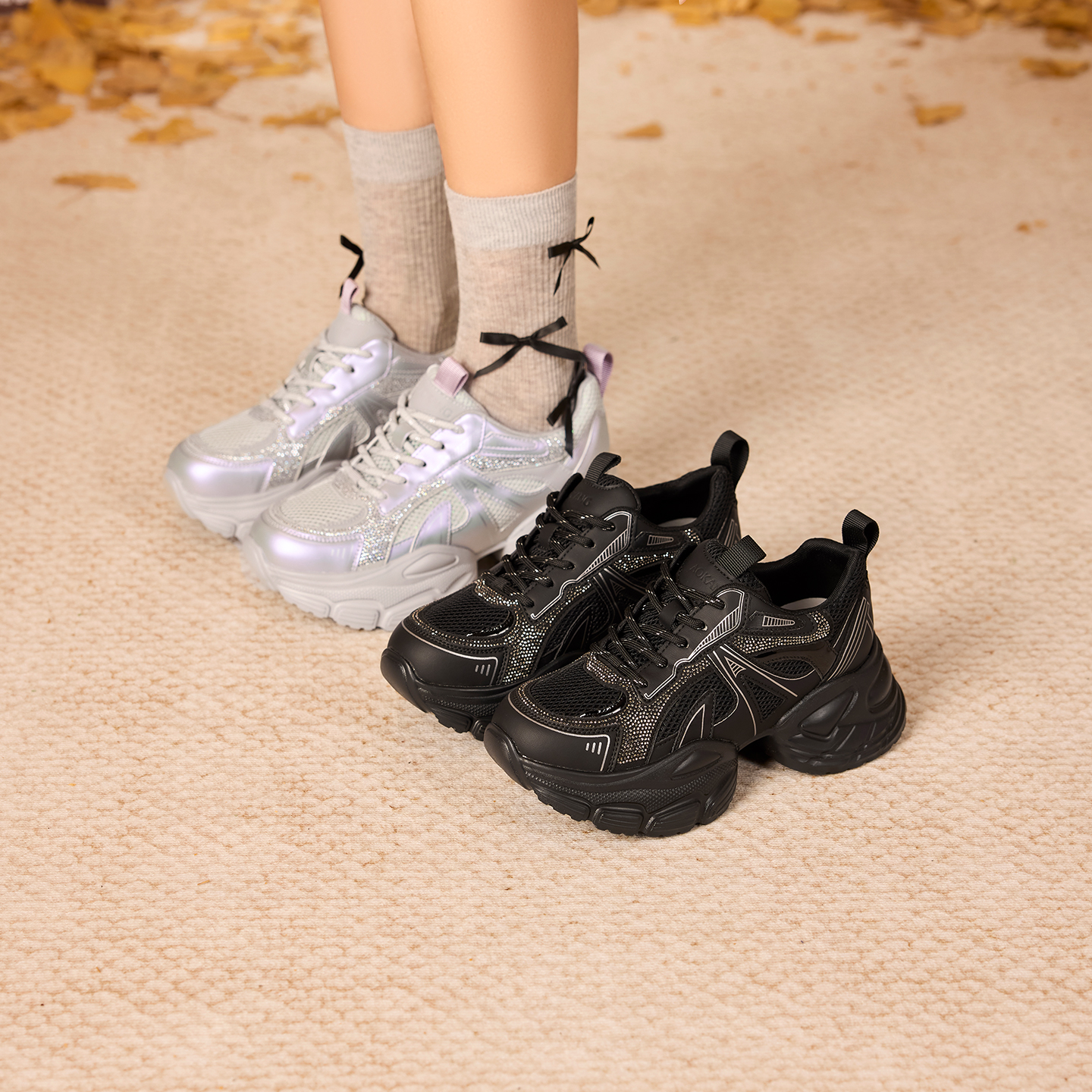 女休闲鞋 GGCC月落星河银色厚底脏脏老爹鞋 明星同款 子 双11预售