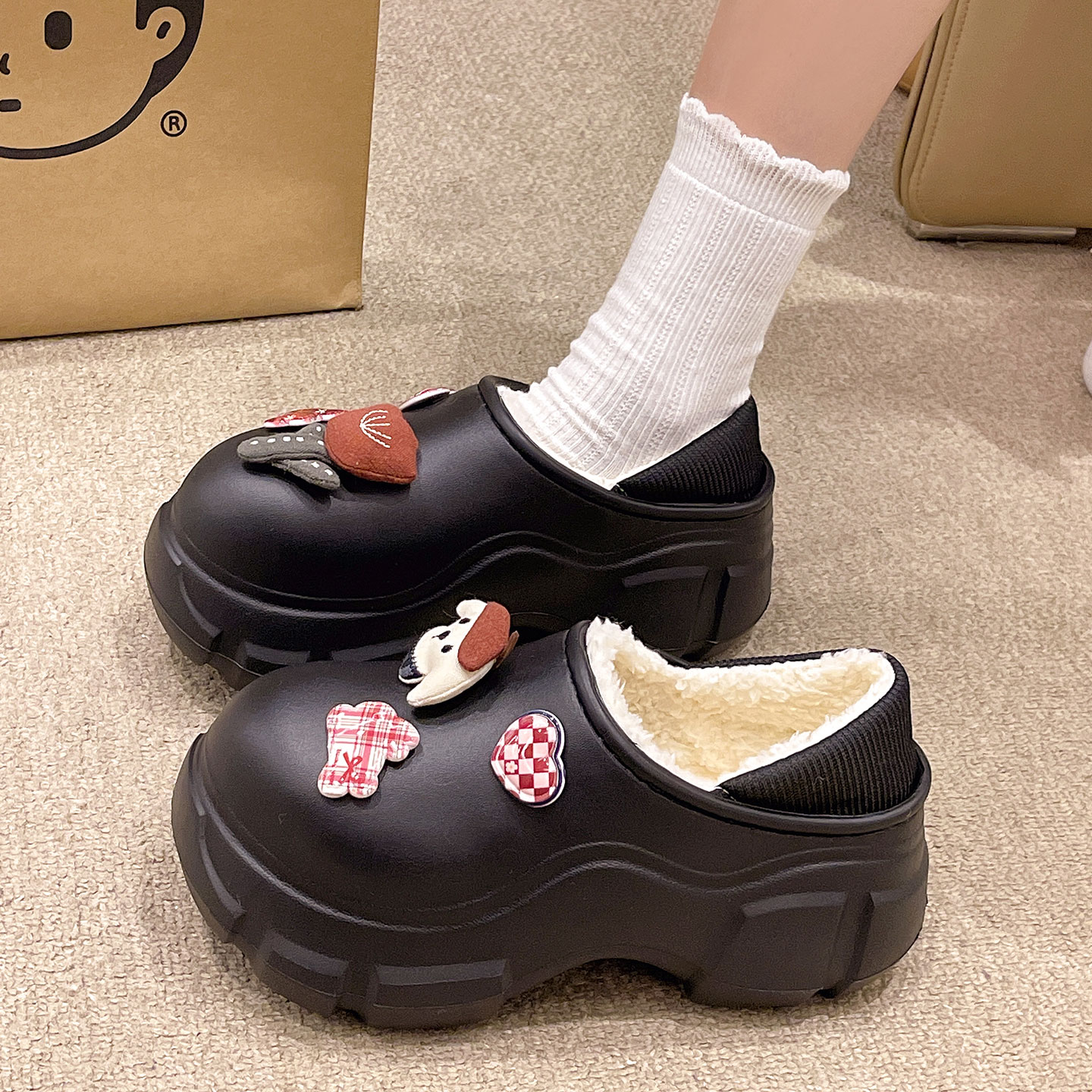 1113474 包头厚底LOGO松紧带休闲懒人毛毛鞋 UGG秋季 女士舒适时尚