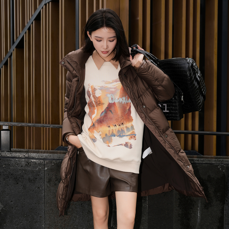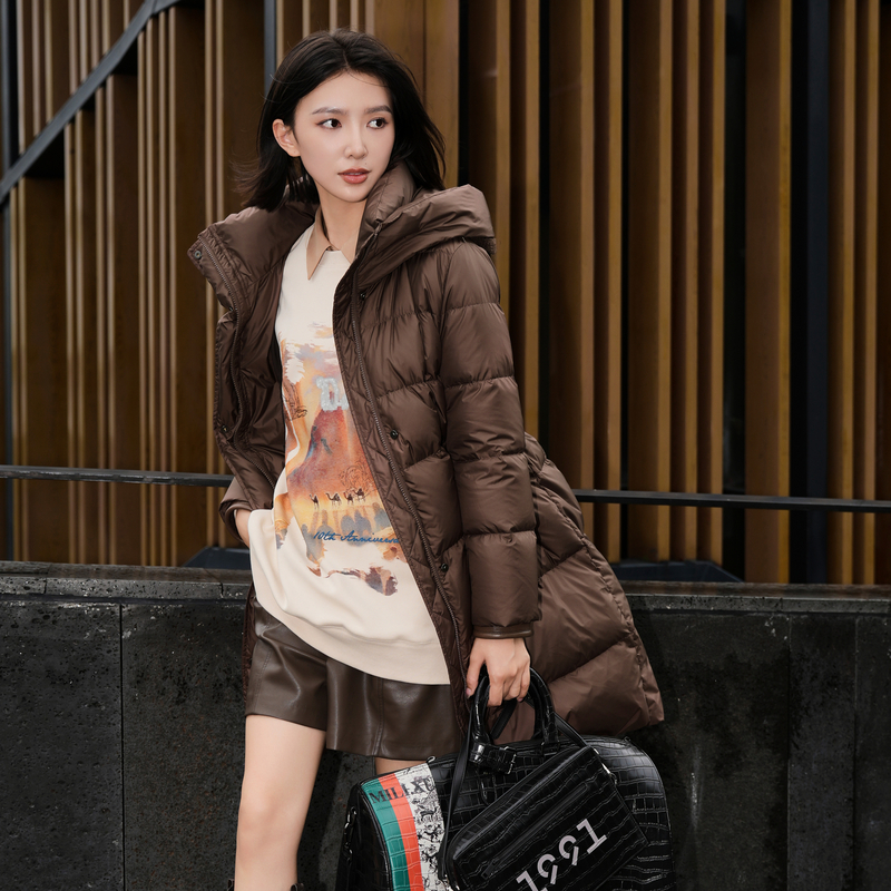 雪中飞2025秋冬女士长款 保暖宽松显瘦抗寒外套 羽绒服连帽过膝韩版