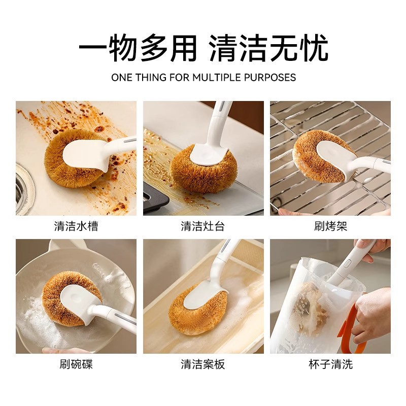 日本天然棕毛刷子长柄洗锅刷不沾油洗碗刷家用厨房刷不伤锅神器