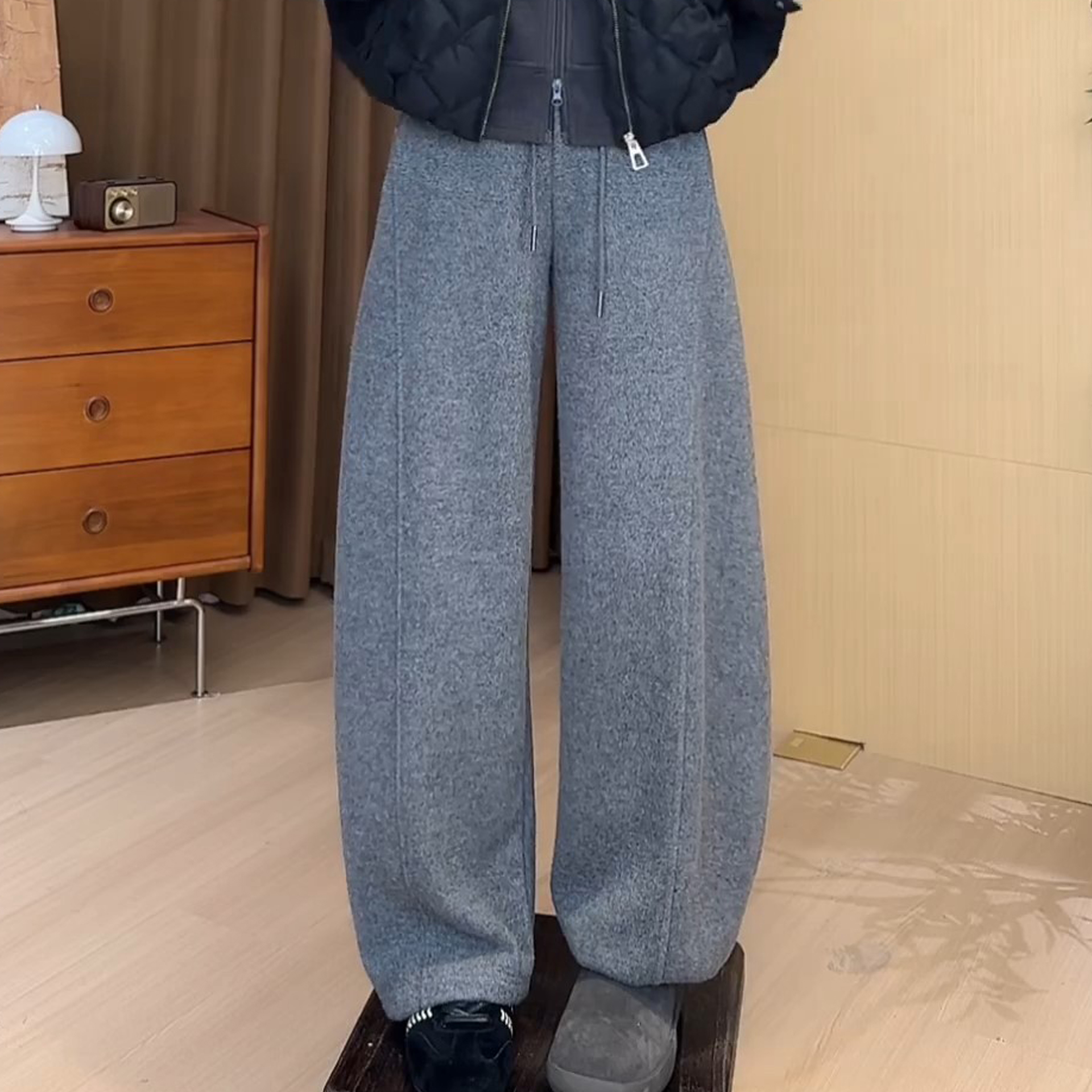 加绒街舞穿搭褶皱宽松休闲长裤 女秋冬季 子 灰色运动卫裤 自然涩美式