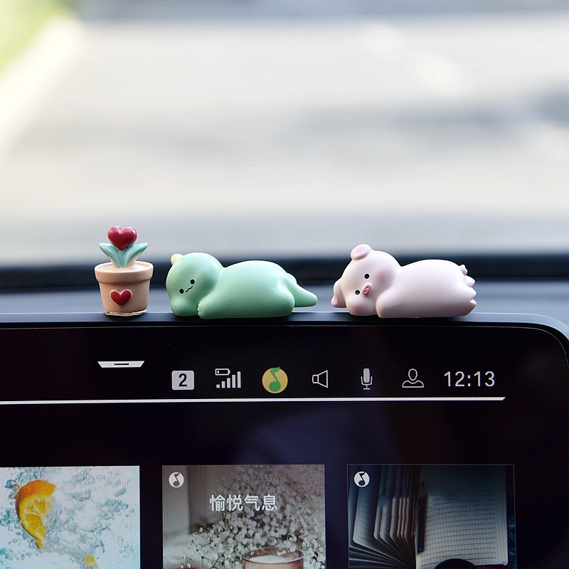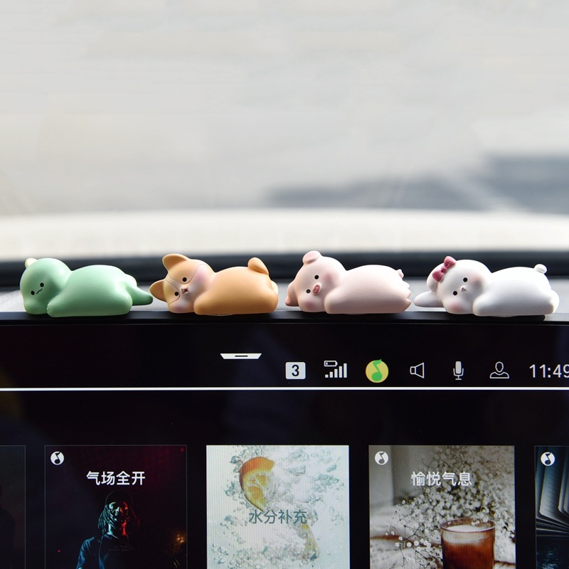 创意车载饰品摆件汽车中控台屏幕可爱卡通动物公仔车上装 饰用品女