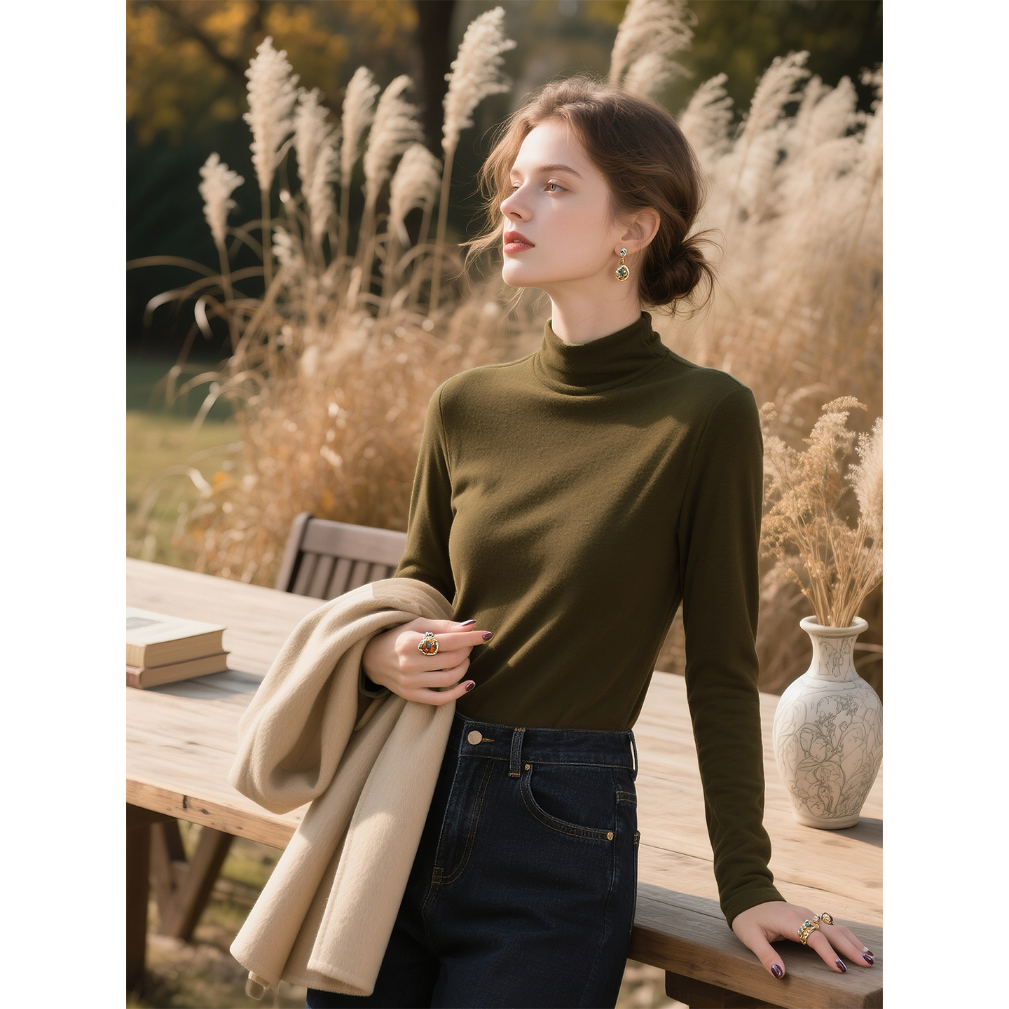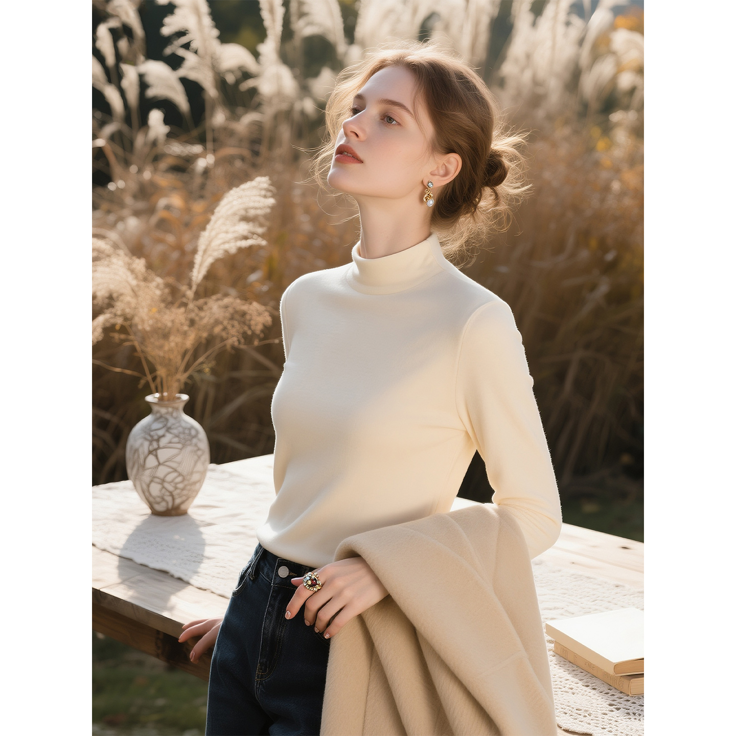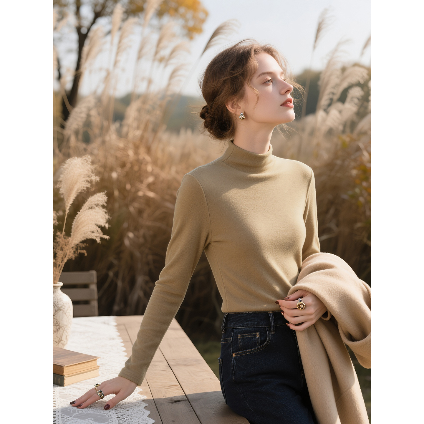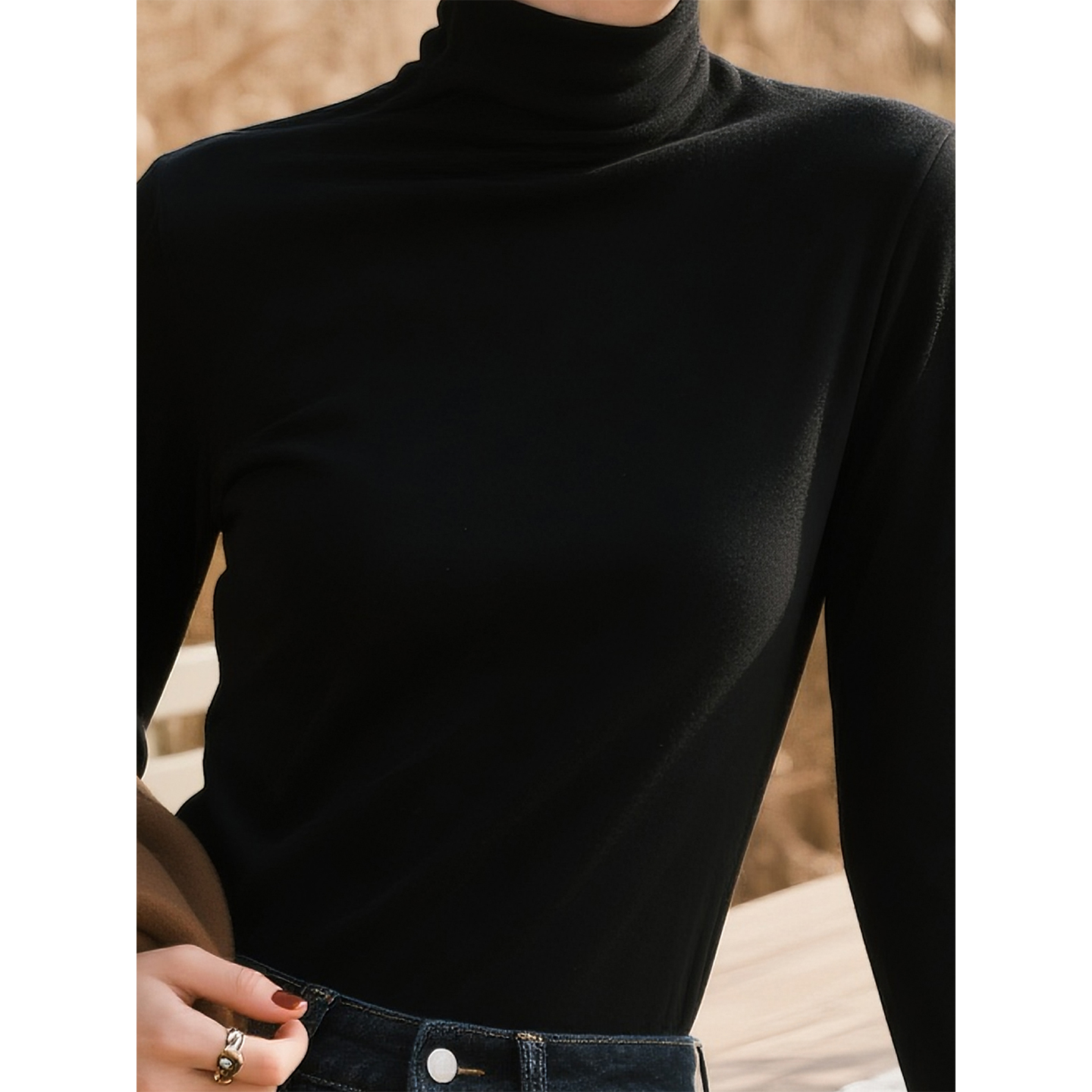 夜空黑半高领天丝针织衫 高级感气质显瘦打底上衣 女2025年秋冬新款