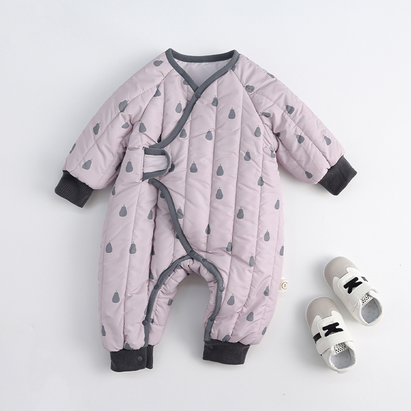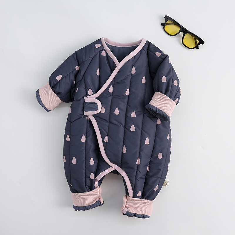 婴儿连体衣秋冬衣服新生儿满月护肚宝宝夹棉哈衣打底薄棉爬服棉衣