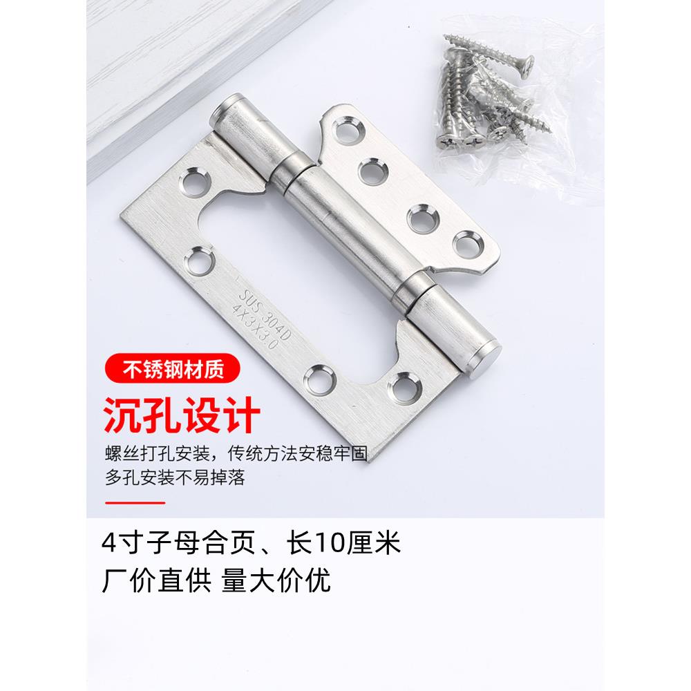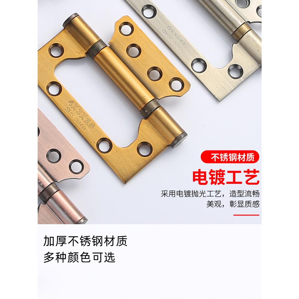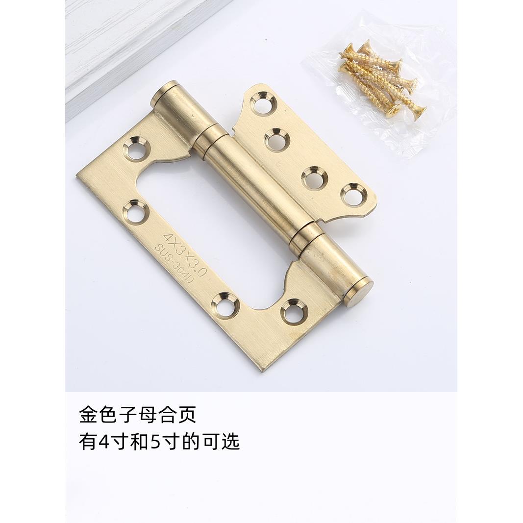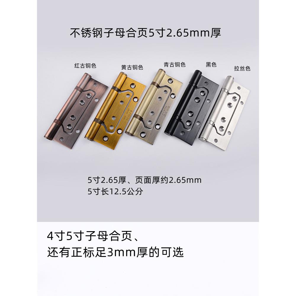 不锈钢4寸子母合页房门卧室内木免开槽蝴蝶静音金黑色字母5寸铰链