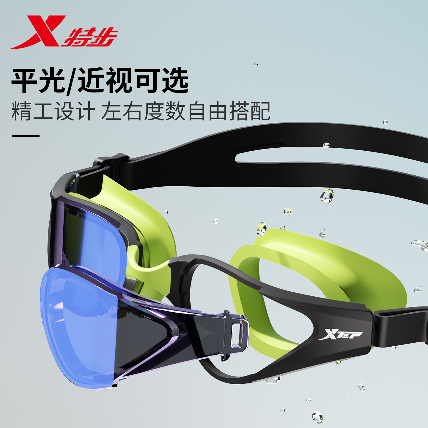 特步泳镜防水防雾高清近视度数男专业游泳眼镜潜水装 备女泳帽套装
