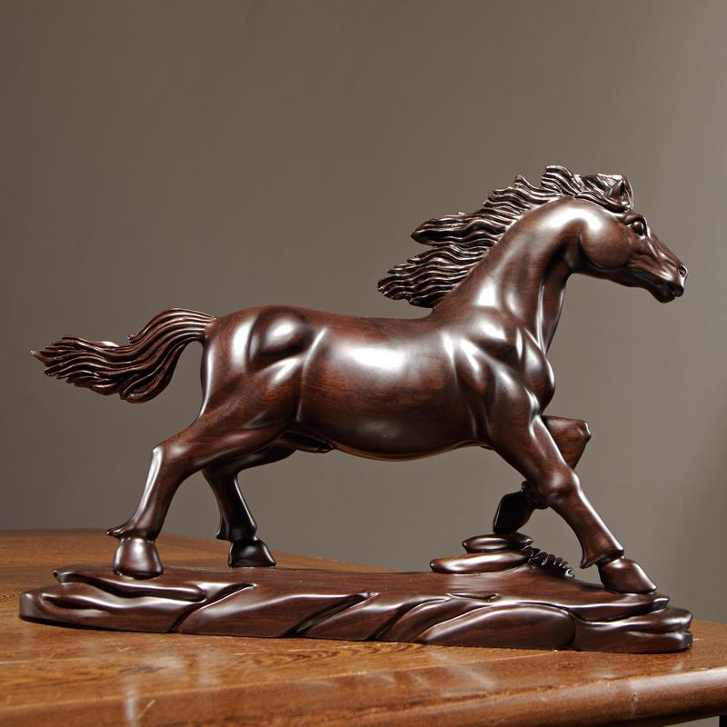 黑檀木雕生肖马摆件实木一马当先工艺礼品家居客厅办公室桌面装 饰