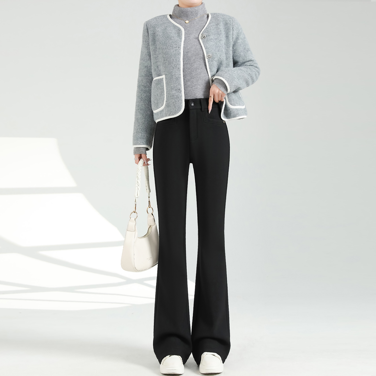 显瘦百搭休闲喇叭裤 黑色加绒加厚微喇裤 高腰修身 新款 子 女2025冬季
