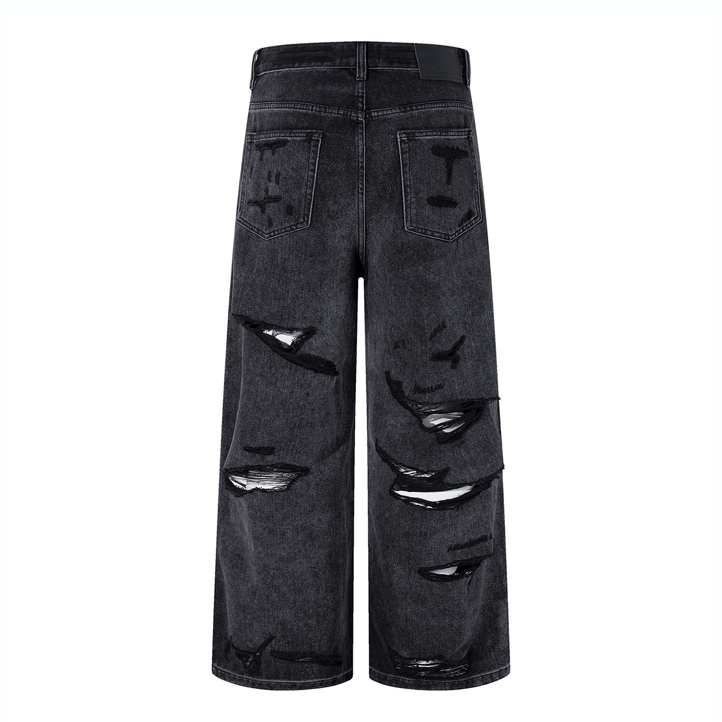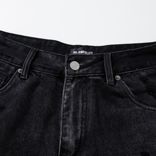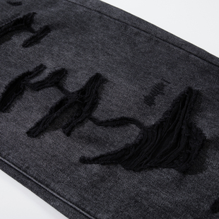 新款 秋季 潮牌阔腿裤 宽松大码 子 复古高级破洞直筒牛仔裤 休闲裤 男士