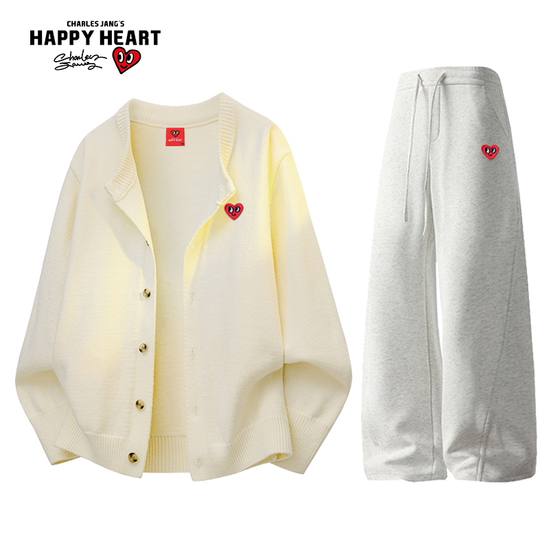 情侣抽绳休闲裤 查尔斯桃心秋冬季 毛衣套装 慵懒针织开衫 两件套 新款
