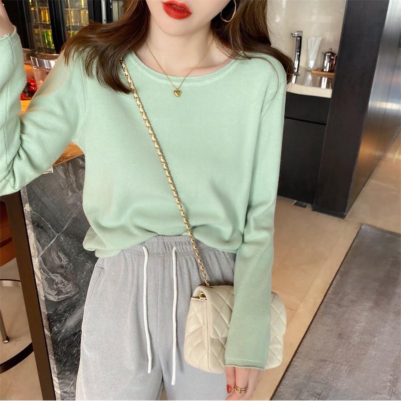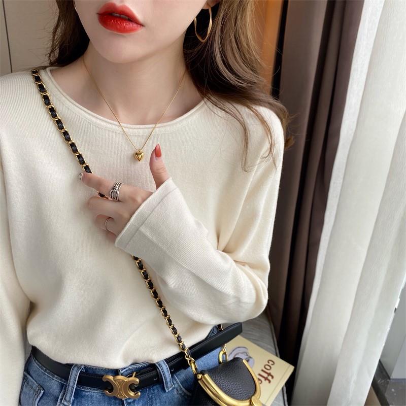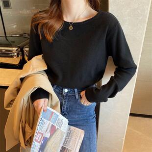 打底衫 白色细腻针织衫 毛衣卷边西装 内搭长袖 上衣1006h 女秋冬薄款