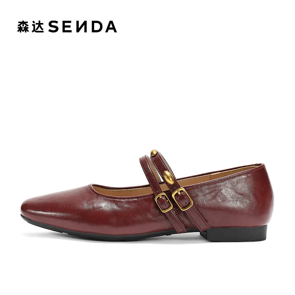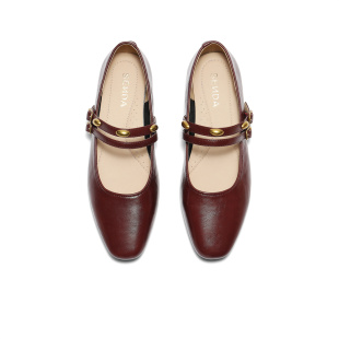 红色玛丽珍鞋 法式 百思图莫奈花园25秋新款 女单鞋 乔欣明星同款