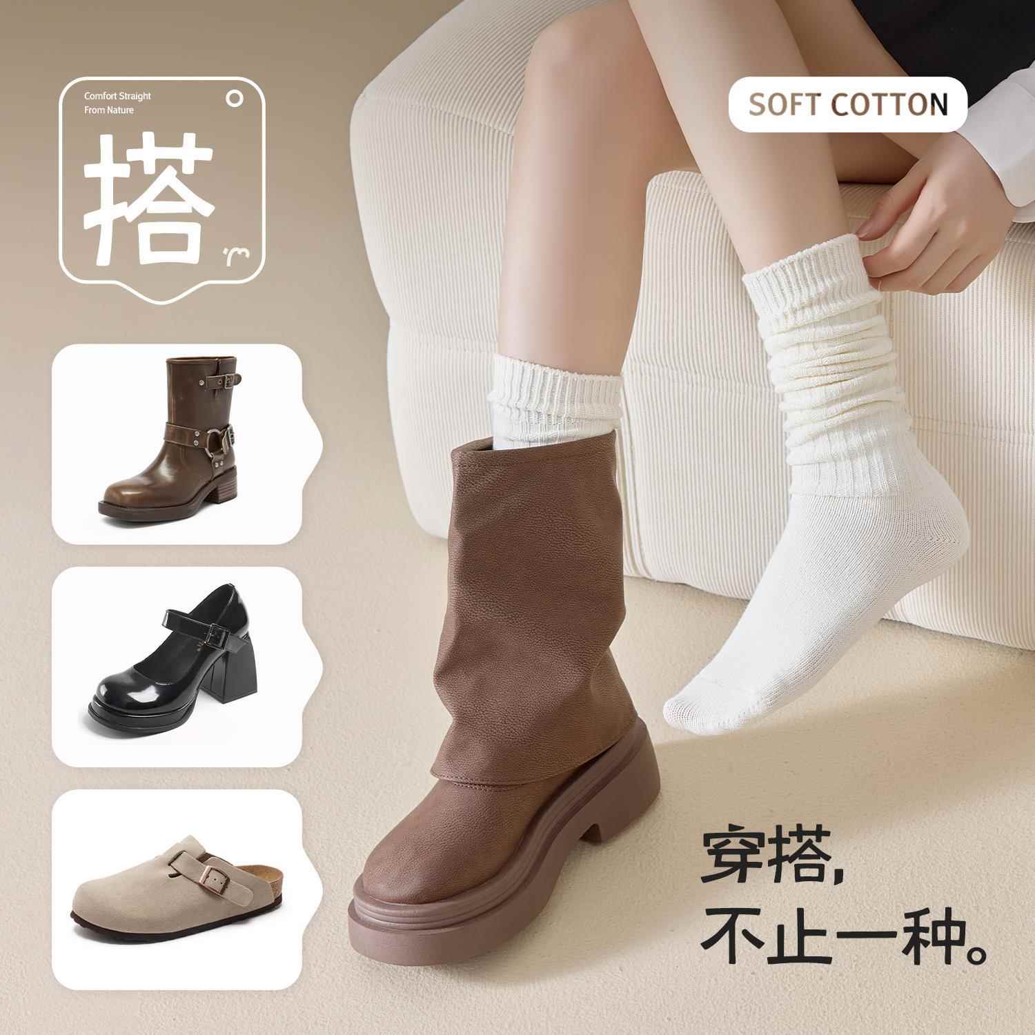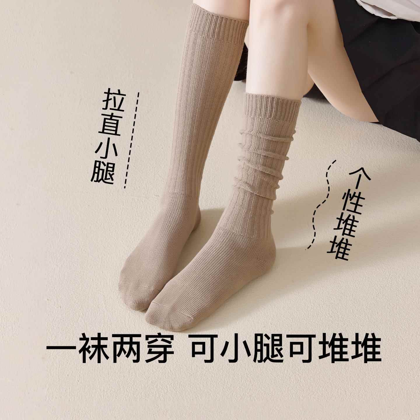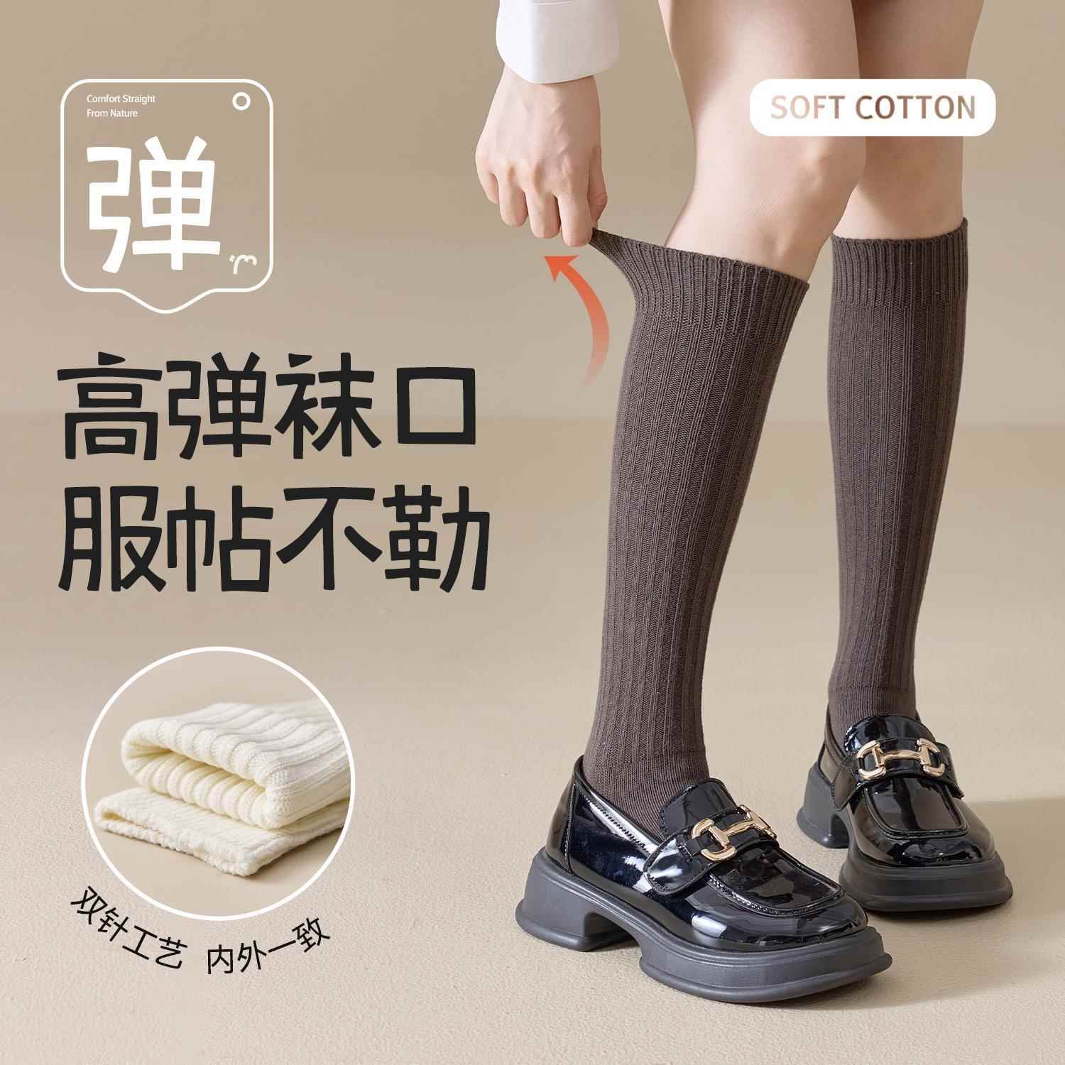 小腿袜子女春秋季 JK潮 过膝袜纯棉中筒袜微压显瘦无骨长筒长袜夏季