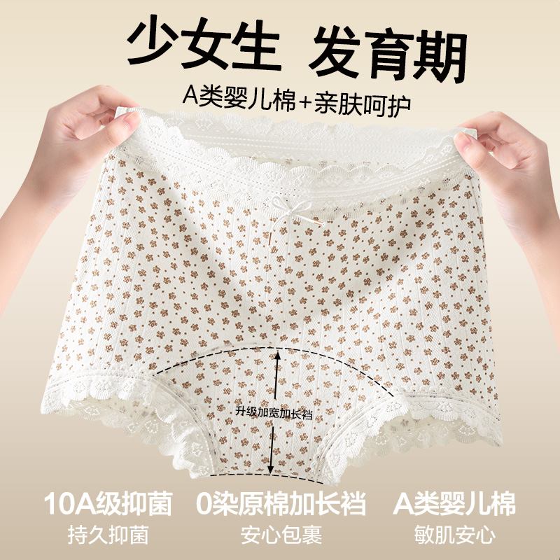 头 中腰无痕蕾丝边平角短裤 猫人内裤 女士纯棉加长抗菌棉裆2025新款