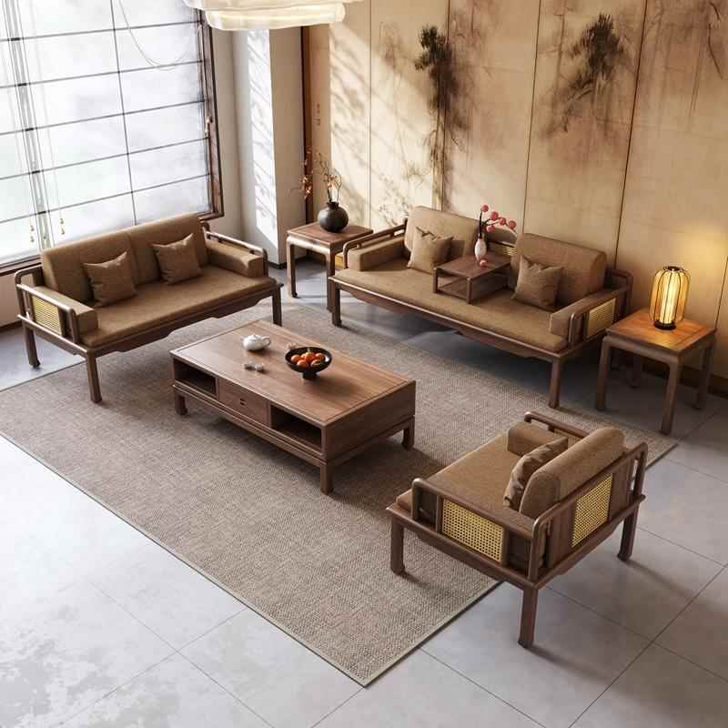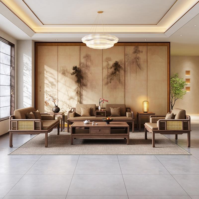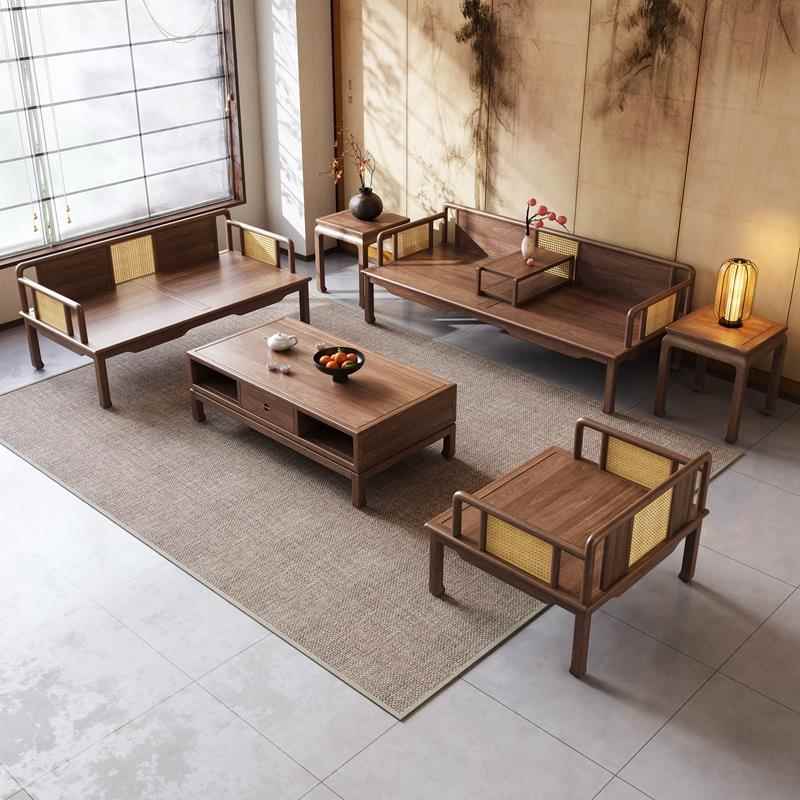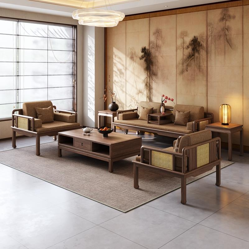 政府补贴实木沙发贵妃新中式 全套简约木质家具 胡桃木现代客厅中式