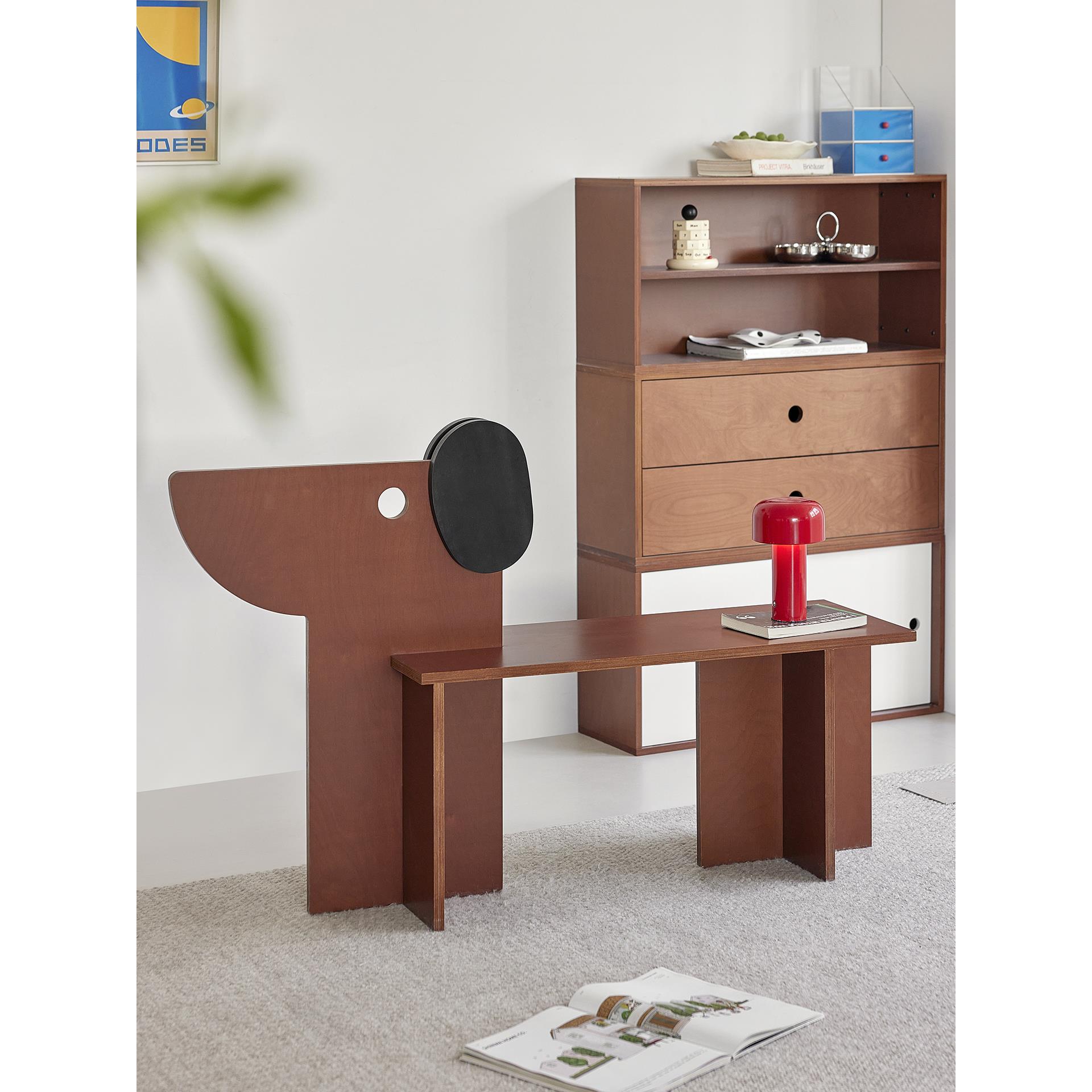 mokamoka小狗长凳创意双人椅实木中古床尾凳艺术工作室换鞋 凳休闲