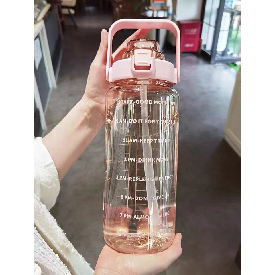 大号容量水杯子女带吸管时间刻度2000ml运动网红夏季 水瓶塑料定制