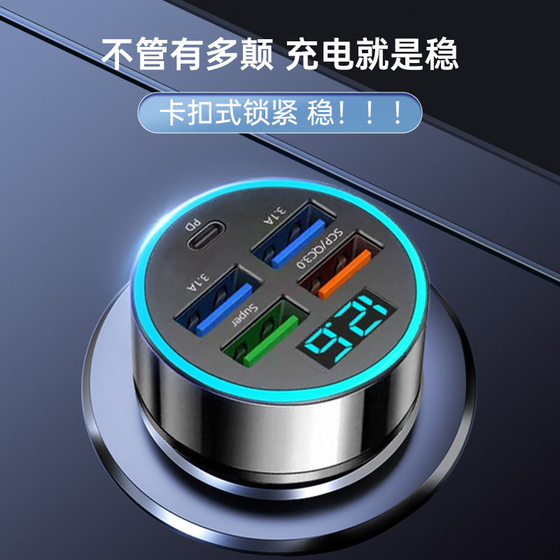 隐藏车载充电器66W 120W超级快充汽车点烟器转换插头一拖三PD快充