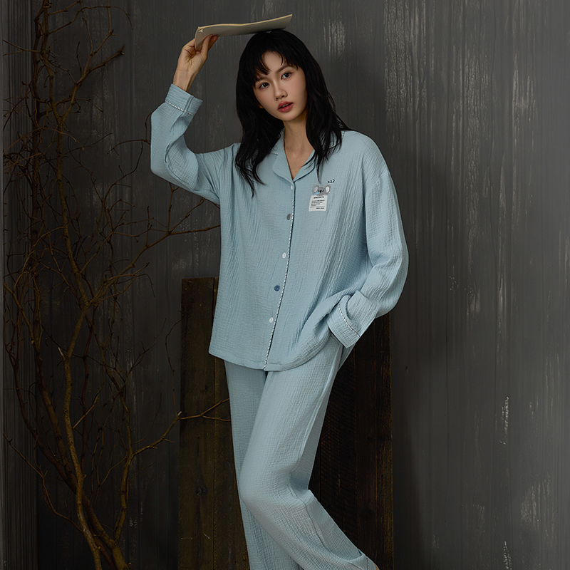 休闲家居服套装 男女同款 可出门 女长袖 安比斯情侣睡衣舒适纯棉秋季