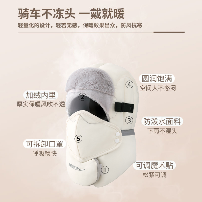 回力东北防寒帽子男士 防风防泼水面罩电动车保暖骑行雷锋帽女 冬季