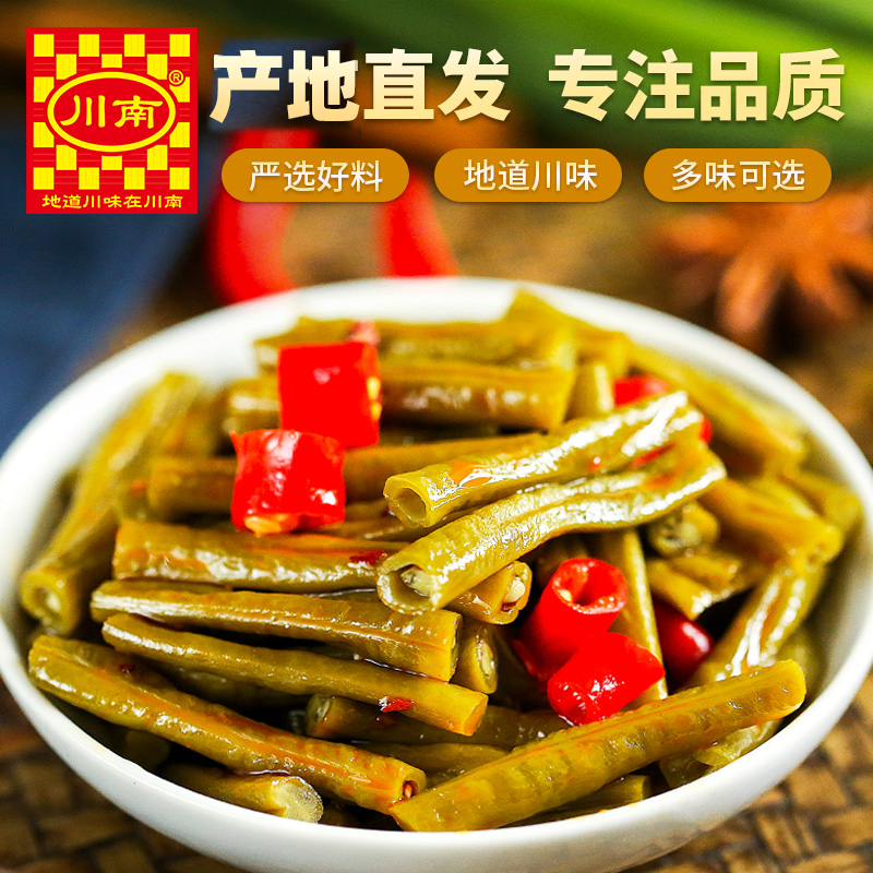 川南红油豇豆123g袋装 酸豆角四川泡菜麻辣榨菜咸菜不辣缸豆下饭菜