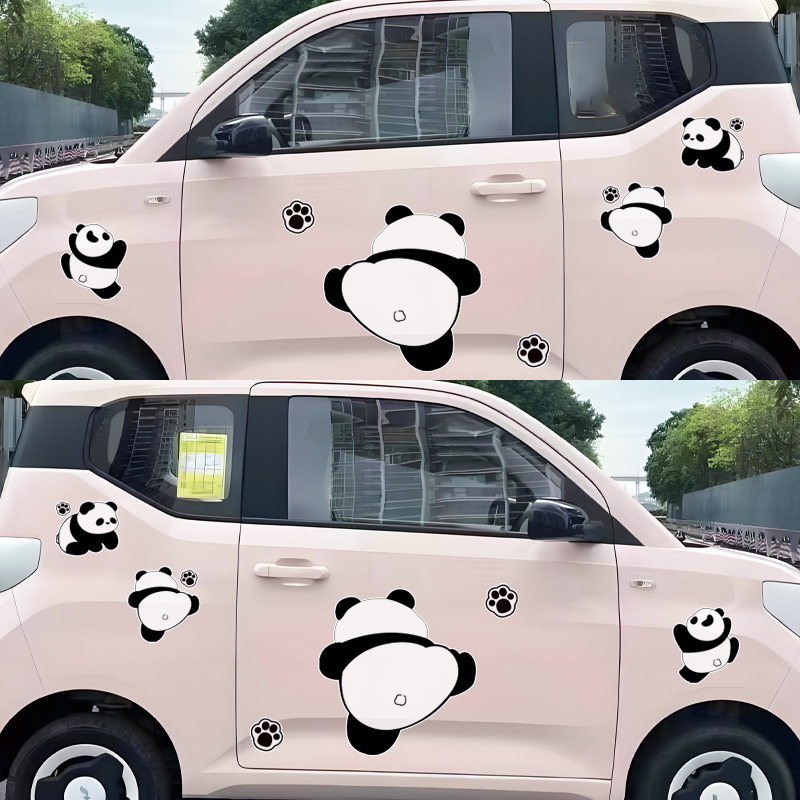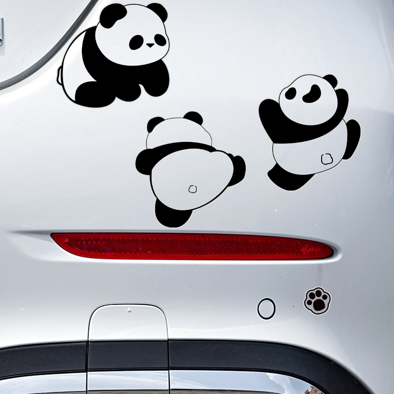饰 饰贴纸头盔警示装 汽车车贴熊猫车身遮挡电动车个性 划痕贴卡通装