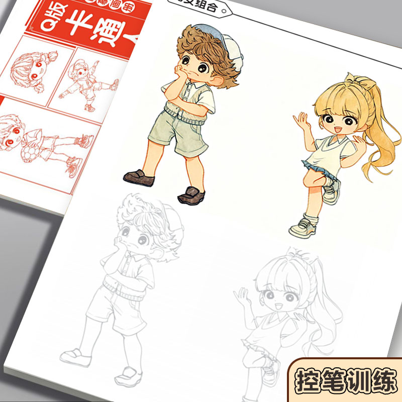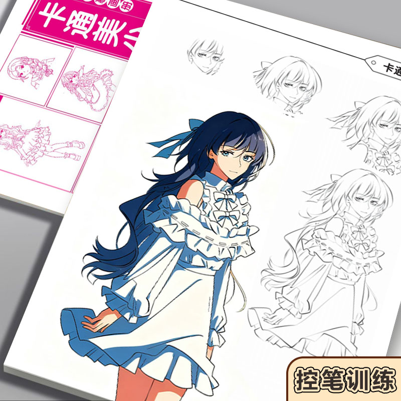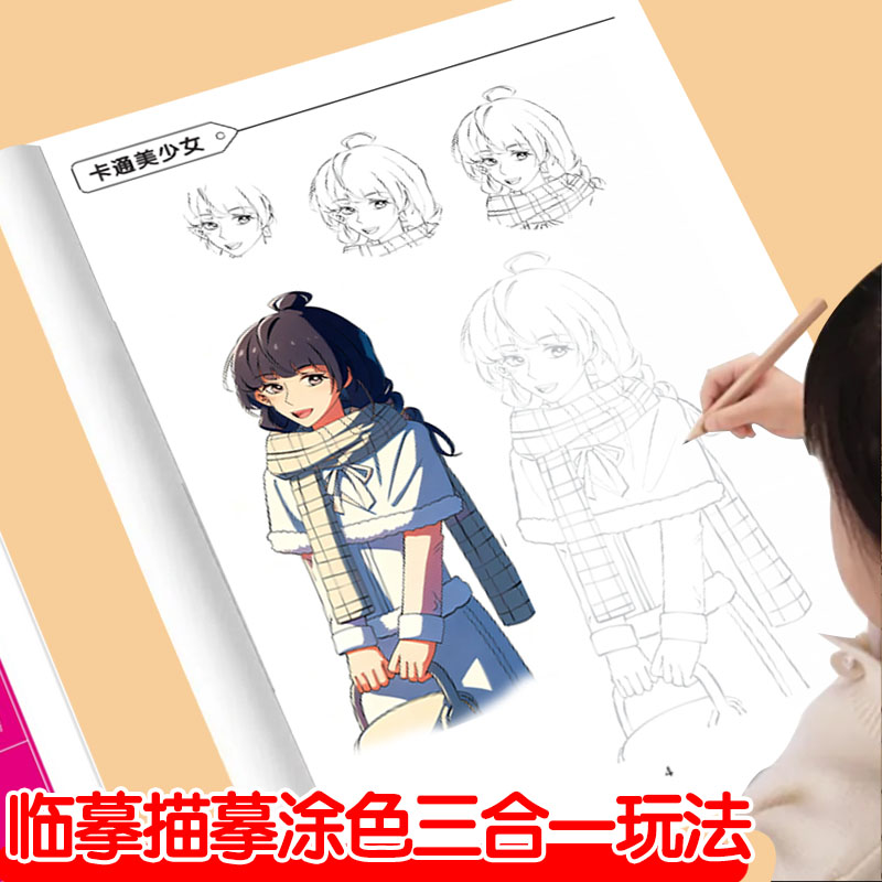 线描临摹画册漫画入门手绘描摹本动漫人物线稿描绘儿童描画美少女古风人物绘画画画基础自学教程指南白描素描临摹卡通素描书教材Q